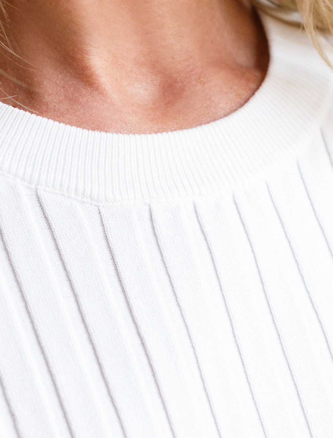 Джемпер тонкой вязки из вискозы с нейлоном. Модель с круглым вырезом прилегающего силуэта. Мягкая очень приятная к коже пряжа хорошо держит форму и гарантирует комфорт во время носки в течение всего дня. Изделие дополнено фирменным металлическим логотипом бренда. натуральный белый