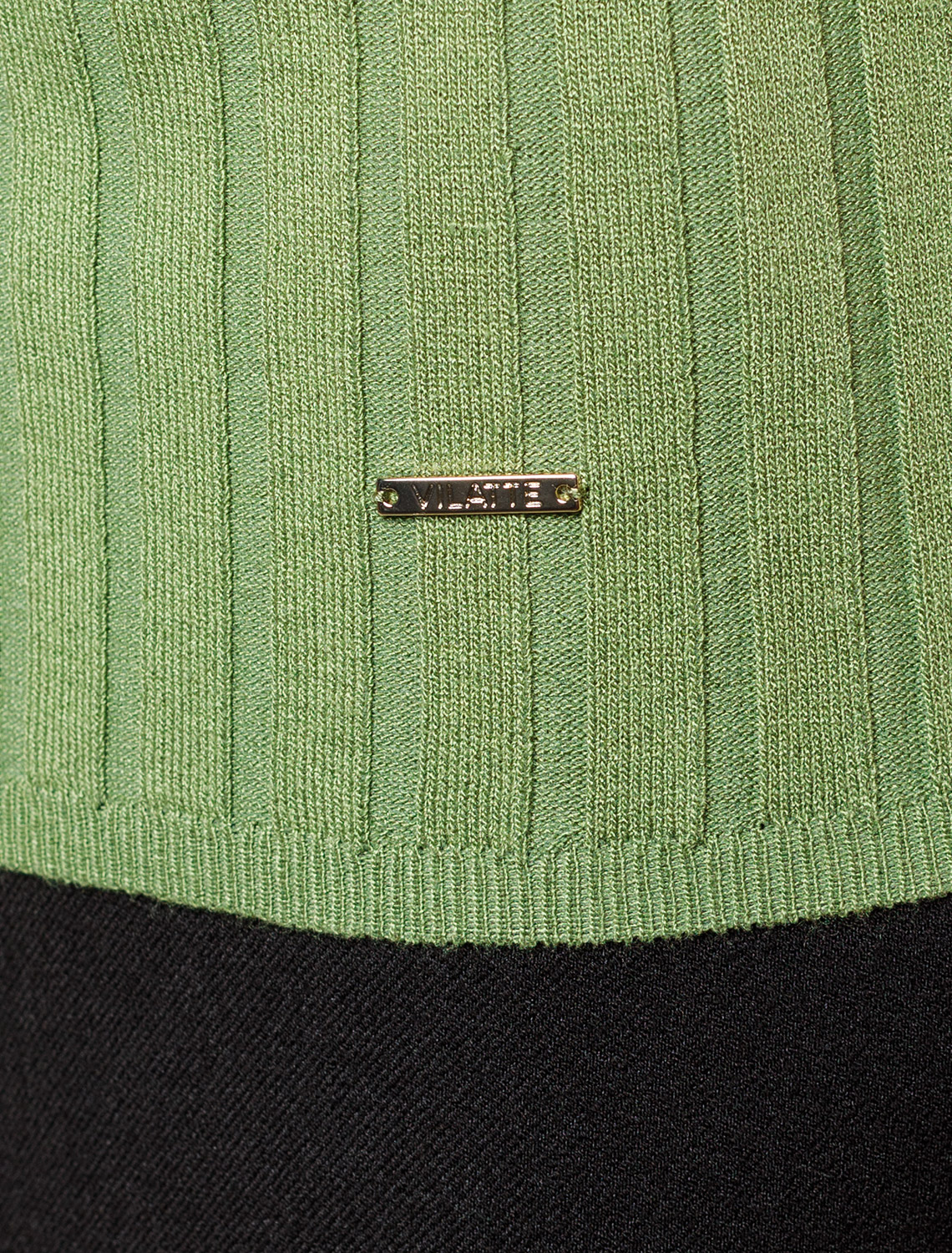 Джемпер тонкой вязки из вискозы с нейлоном. Модель с круглым вырезом прилегающего силуэта. Мягкая очень приятная к коже пряжа хорошо держит форму и гарантирует комфорт во время носки в течение всего дня. Изделие дополнено фирменным металлическим логотипом бренда. зеленый
