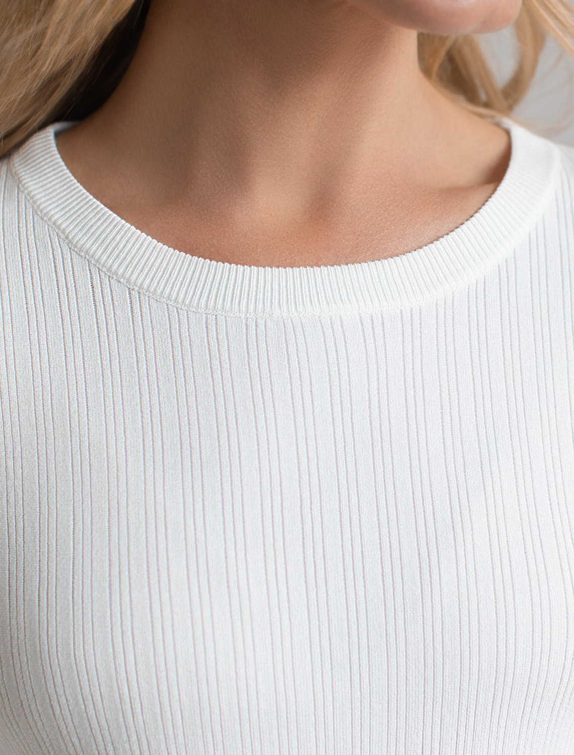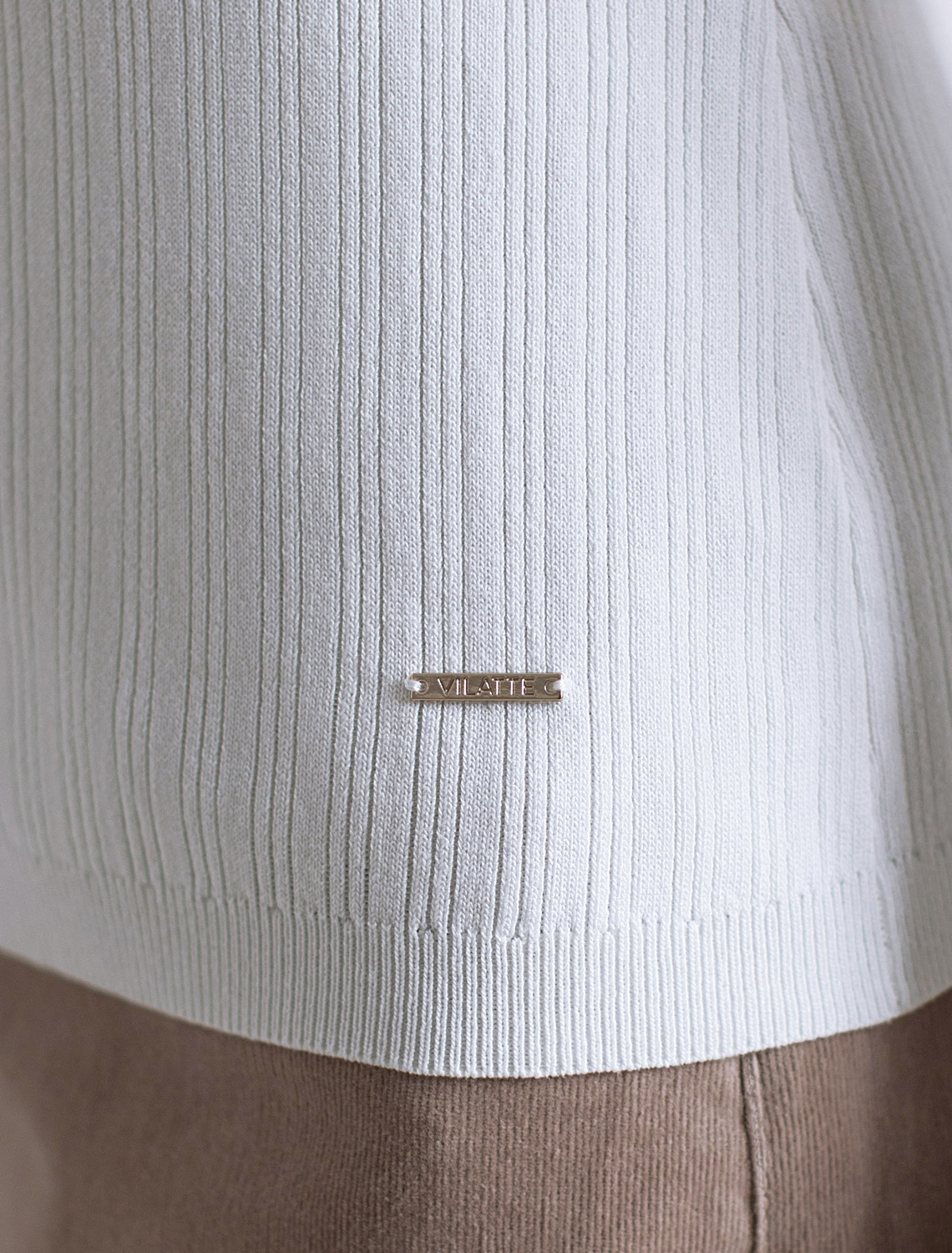 Джемпер тонкой вязки выполнен из вискозы с нейлоном. Модель прилегающего кроя безупречно сидит по фигуре не сковывая движений. Мягкая, приятная к телу пряжа гарантирует комфорт и формоустойчивость в течение долгого времени. Изделие дополнено фирменным металлическим логотипом бренда натуральный белый