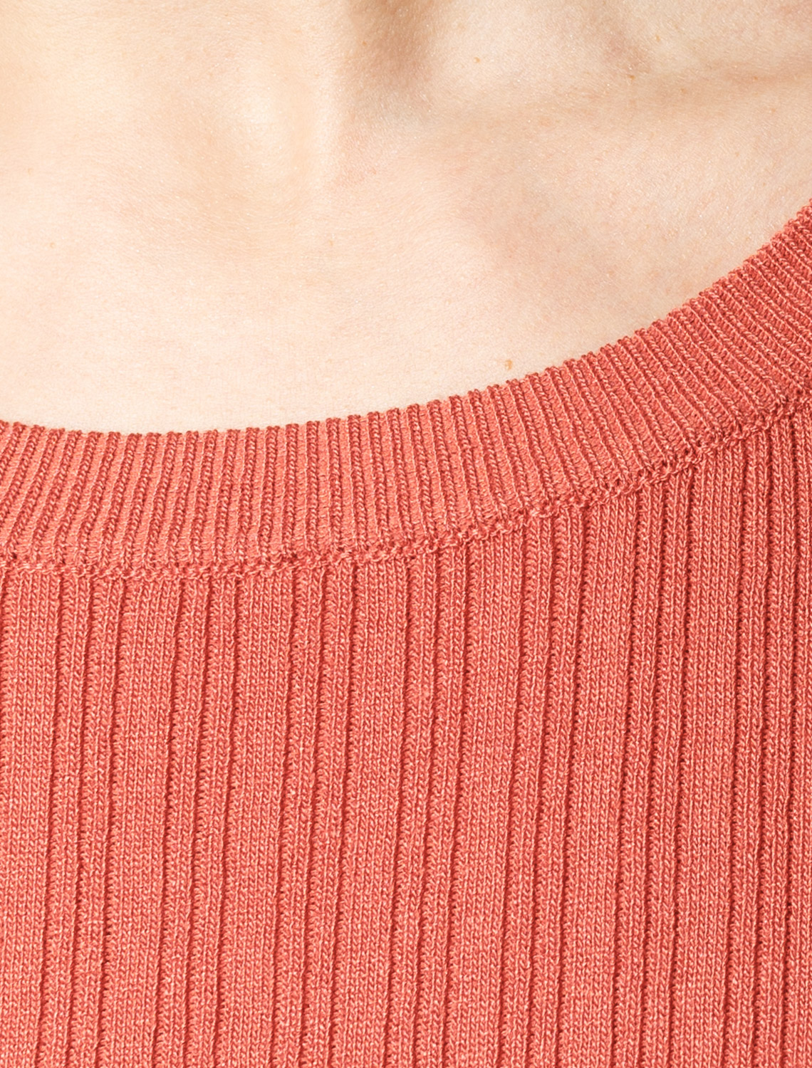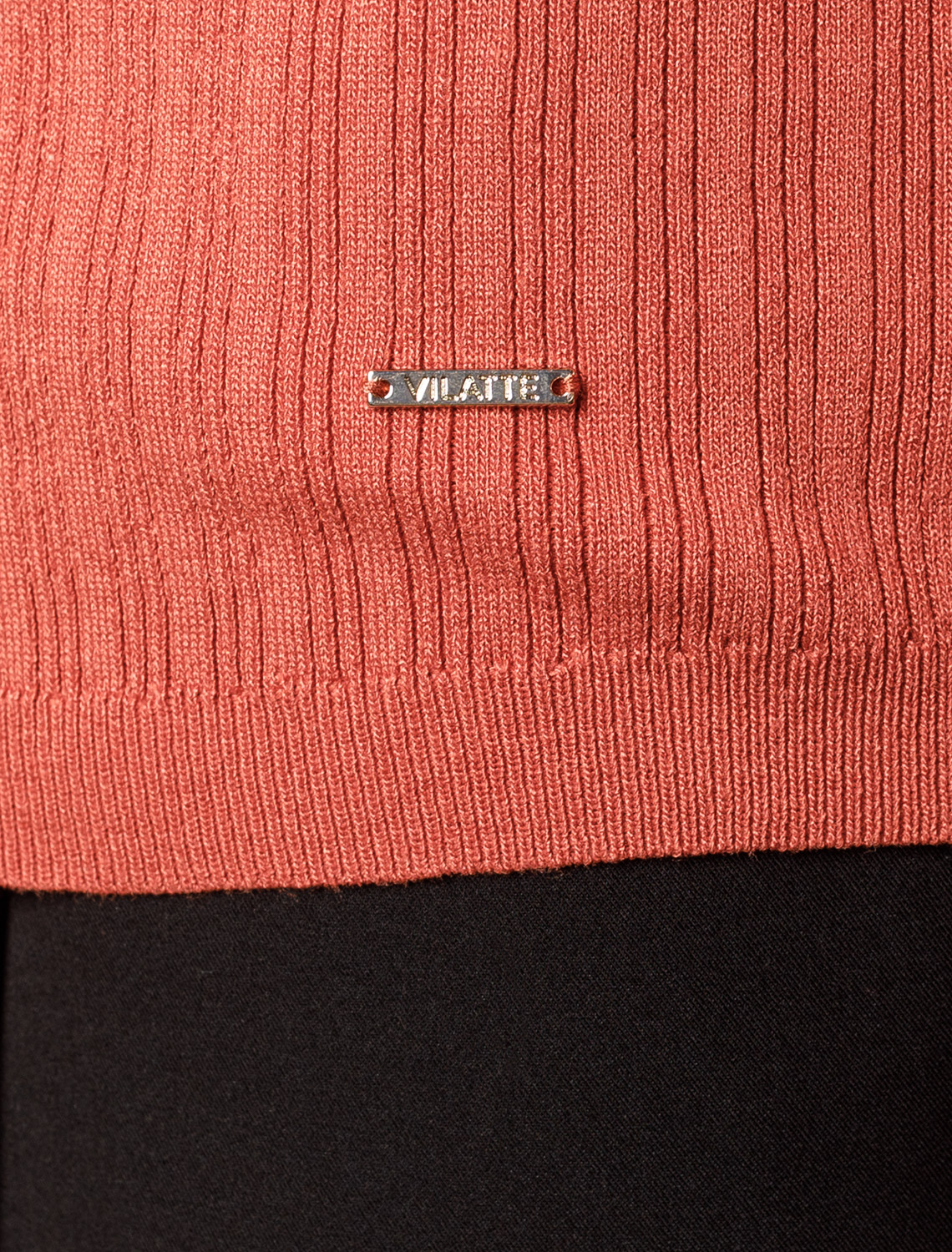 Джемпер тонкой вязки выполнен из вискозы с нейлоном. Модель прилегающего кроя безупречно сидит по фигуре не сковывая движений. Мягкая, приятная к телу пряжа гарантирует комфорт и формоустойчивость в течение долгого времени. Изделие дополнено фирменным металлическим логотипом бренда терракотовый