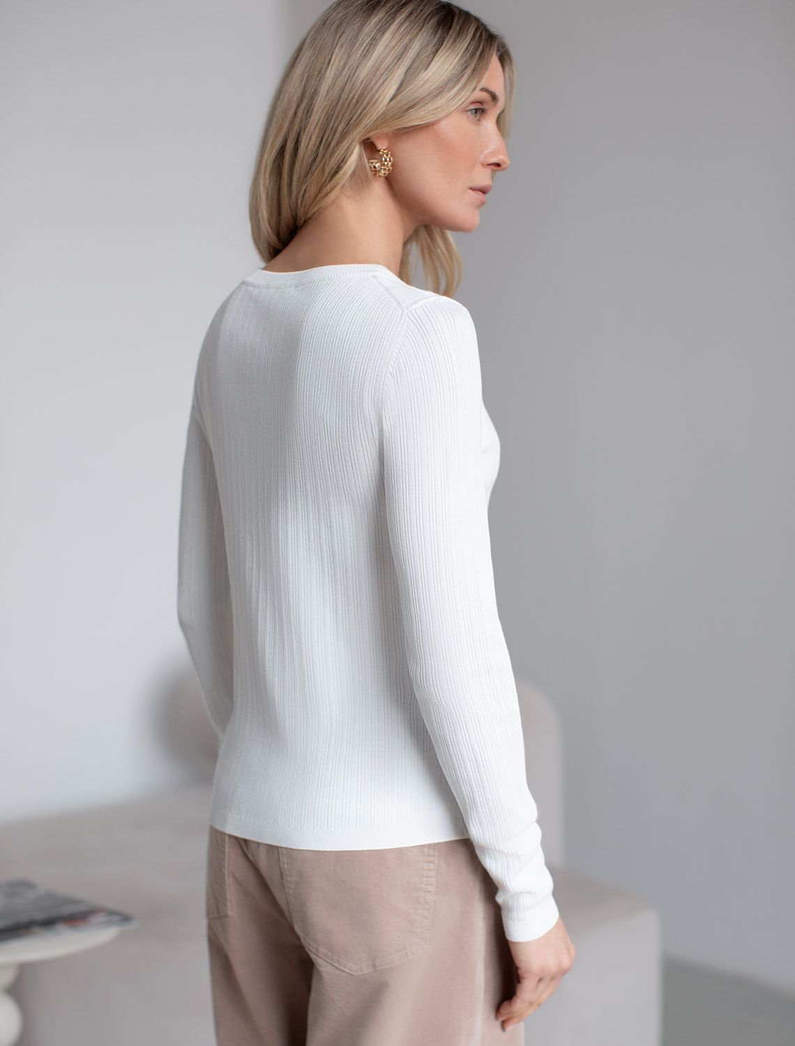 Джемпер тонкой вязки из вискозы с нейлоном D39.347 натуральный белый