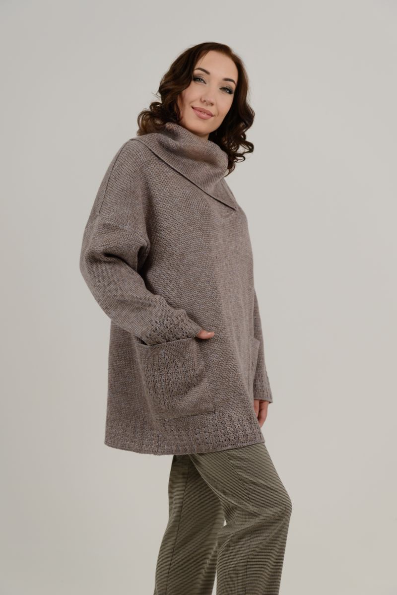 Описание: Джемпер-туника, свободного силуэта, большой воротник, карманы, плотный трикотаж.