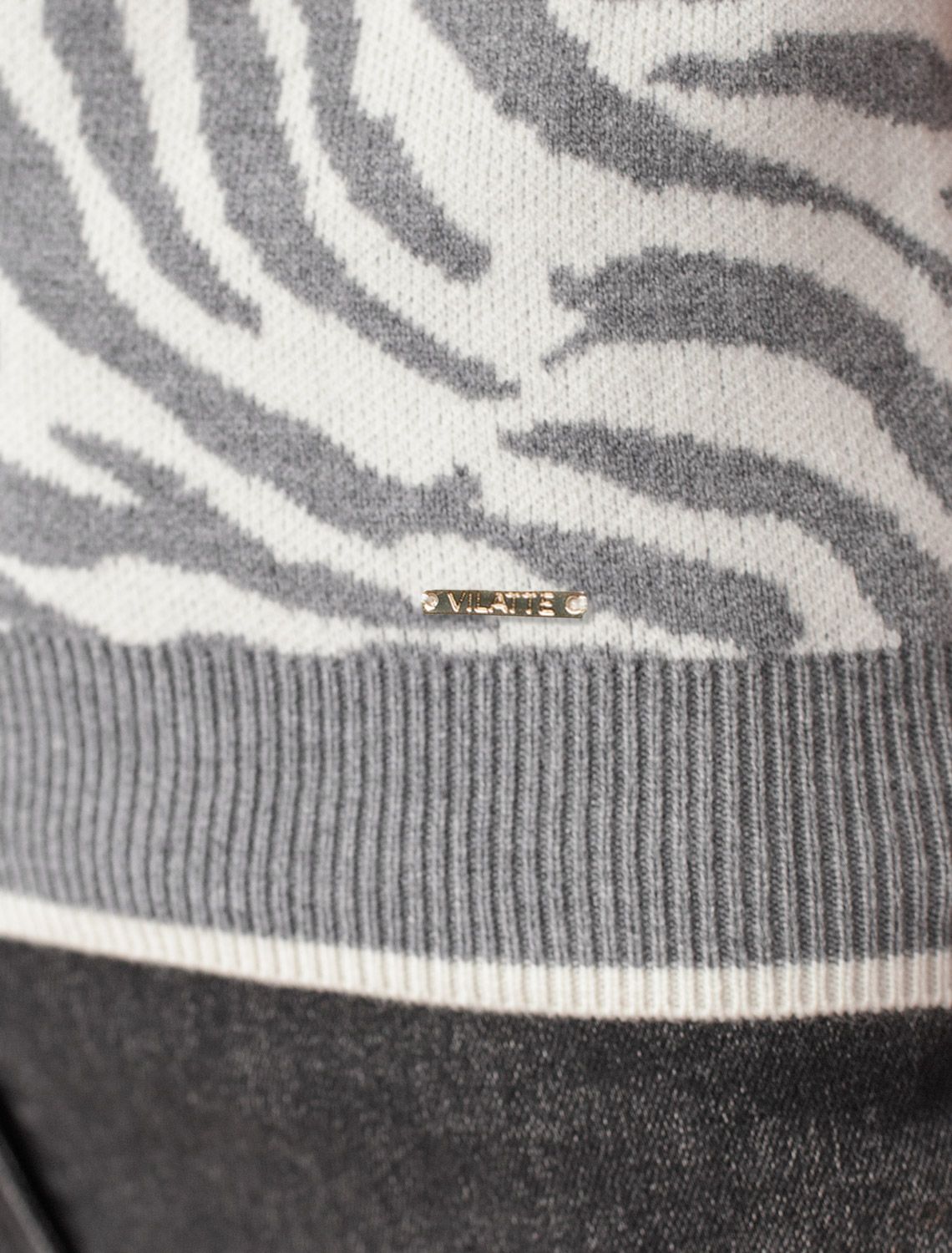 Два цвета пряжи использовано также для горловины и низов изделия, которые обработаны рибсами с добавленией спандекса. Спандекс позволяет сохранить форму джемпера на длительное время, даже после многократных стирок. Джемпер приятно ощущается на теле и поддерживает комфортный микроклимат.