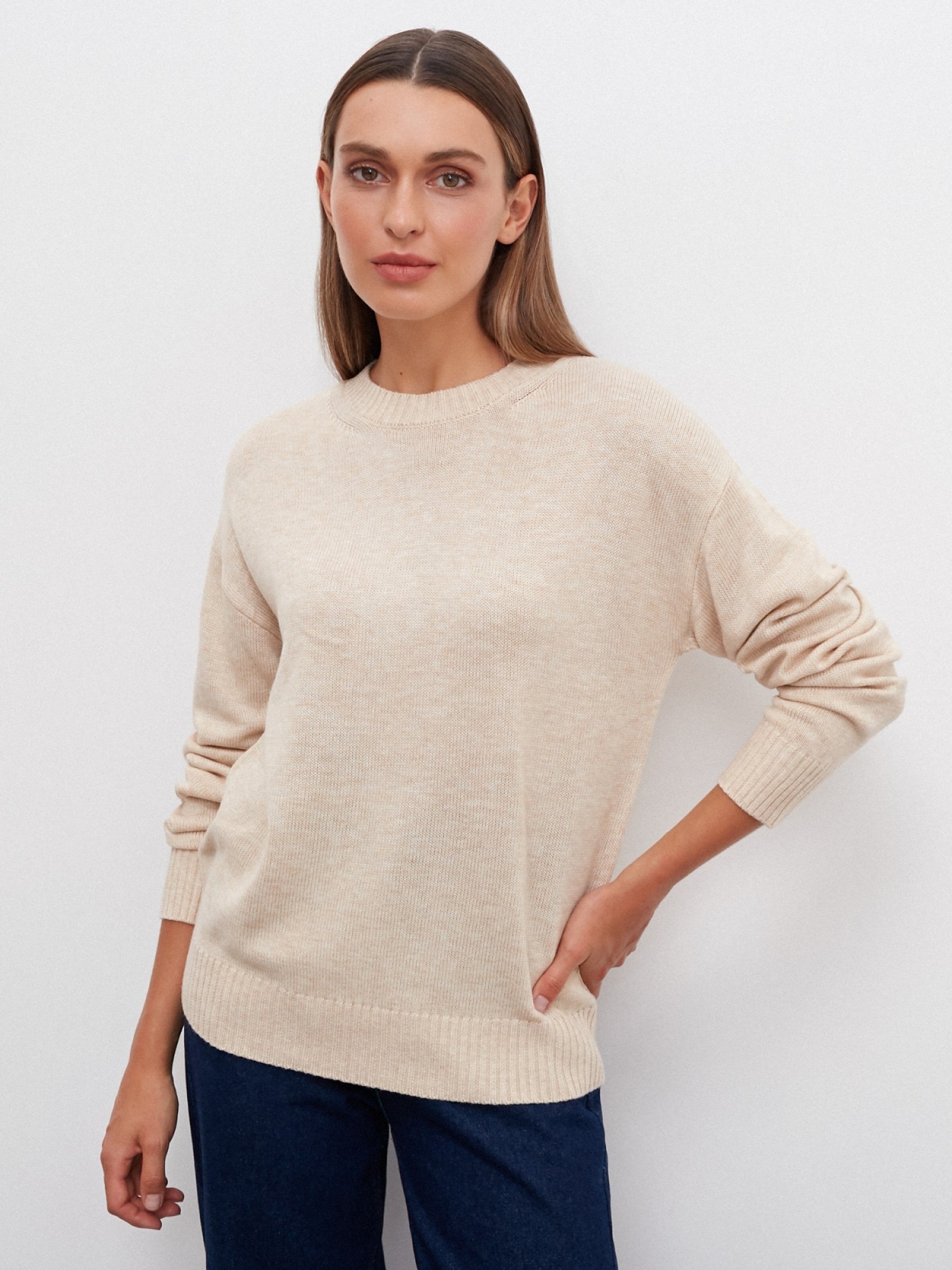 Базовый свитер гладкой вязки из мягкой пряжи с добавлением вискозы, шерсти и акрила. Имеет прямой классический силуэт, спущенное плечо и круглую горловину. Обтачка горловины, манжетов рукавов и низа изделия оформлена эластичной резинкой. Классический образ, который станет ключевой деталью в вашем гардеробе.