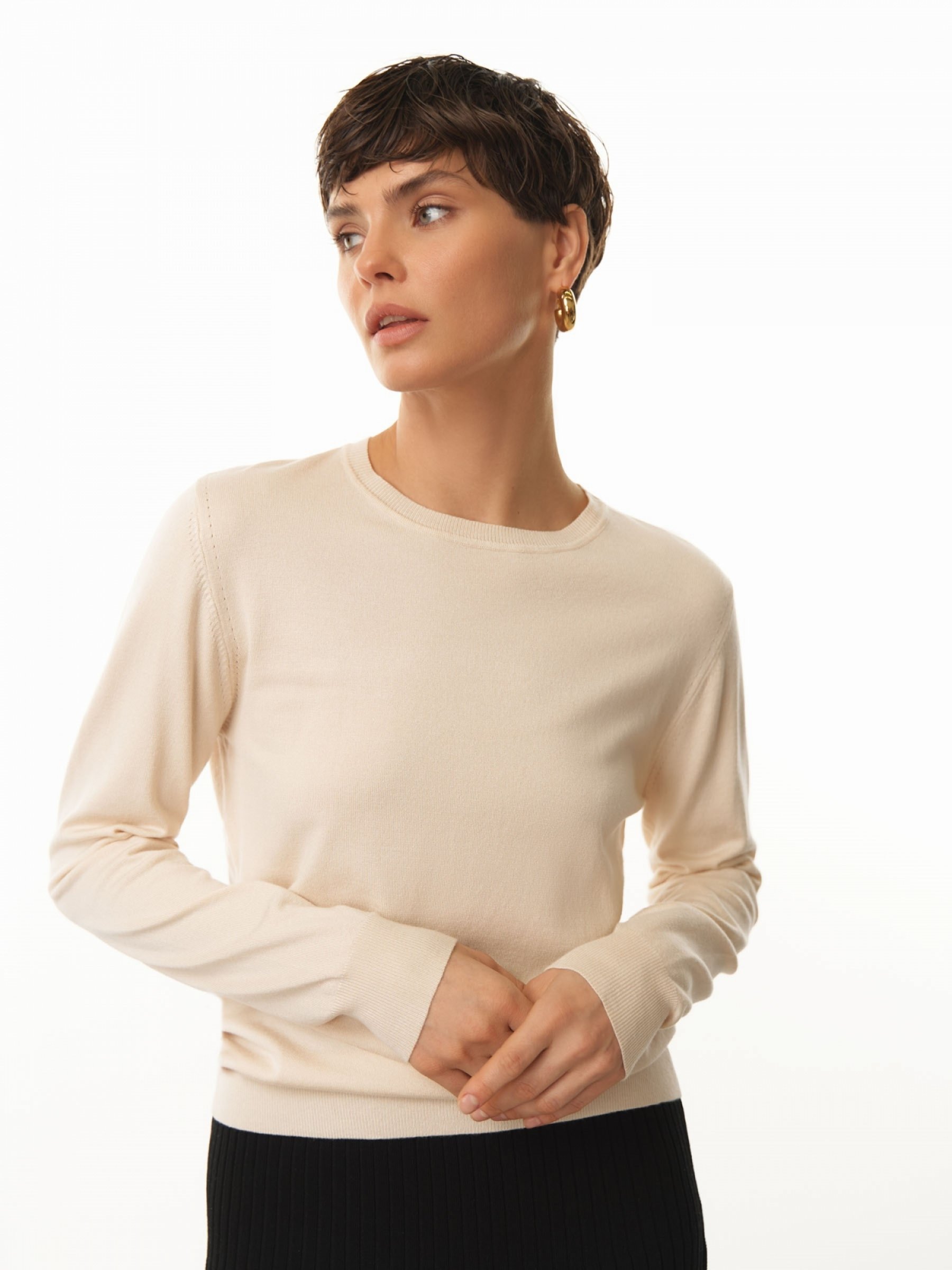 Базовый джемпер классической длины полуприлегающего силуета. Лаконичный дизайн и крой делают его опорным элементом гардероба и основой множества стильных образов. Материал – гладкий трикотаж из 100% вискозы. Круглая горловина, манжеты и низ декорированы резинкой в тон. Джемпер выполнен в свежих спокойных цветах, идеальных для весенне-летнего гардероба.