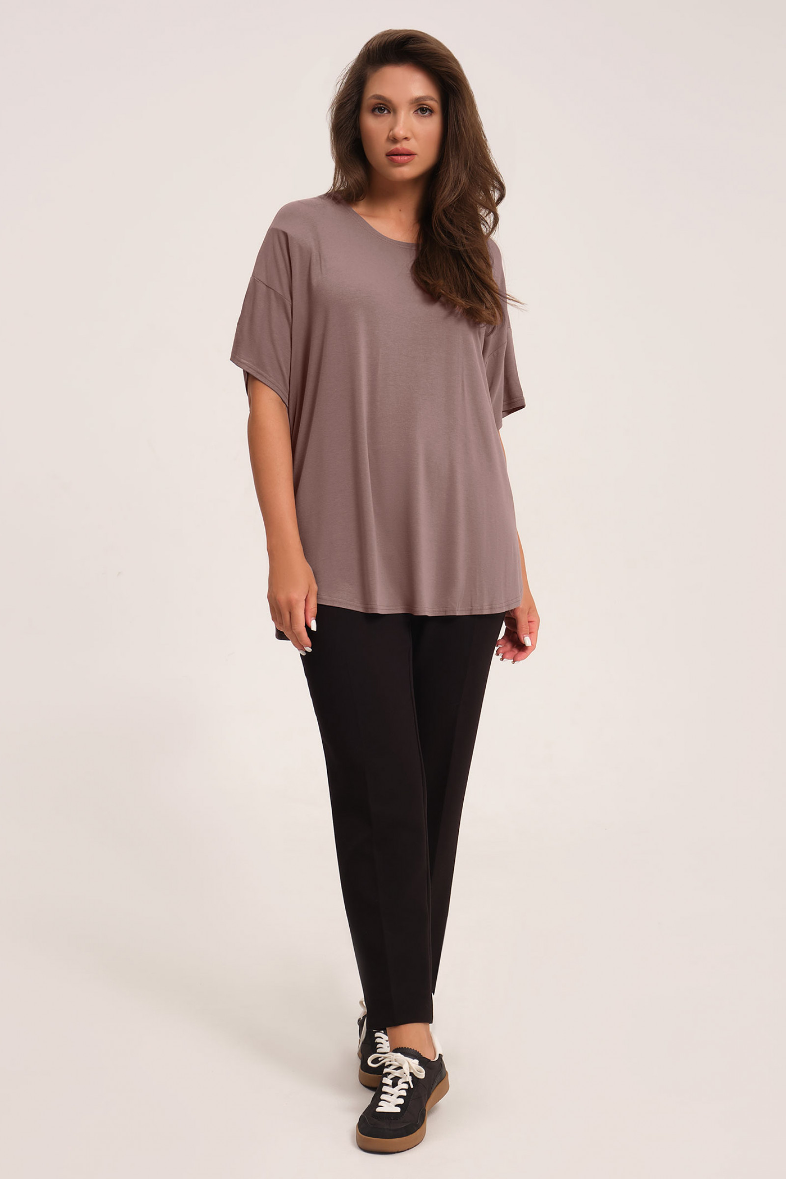 52 Джемпер: Длина изделия - 72см, Длина переда от высшей плечевой точки до низа - 72см, Длина рукава - 14см, Ширина плеча - 22.5см, Ширина по груди - 68см, Ширина по низу - 68см, Ширина рукава - 26.2см;