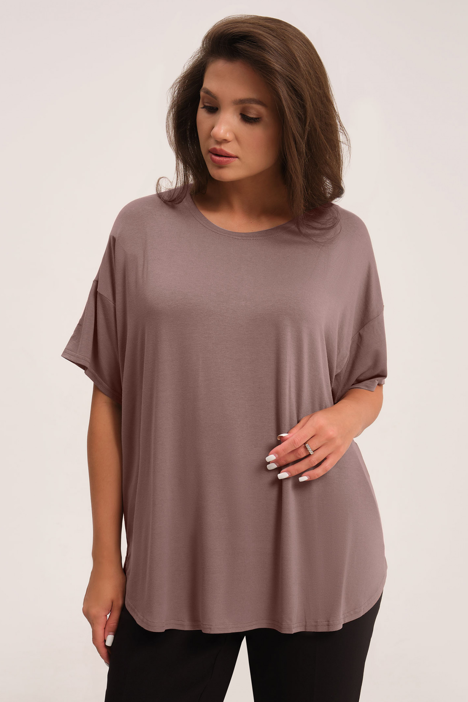 58 Джемпер: Длина изделия - 72см, Длина переда от высшей плечевой точки до низа - 72см, Длина рукава - 14см, Ширина плеча - 24см, Ширина по груди - 74см, Ширина по низу - 74см, Ширина рукава - 26.8см;