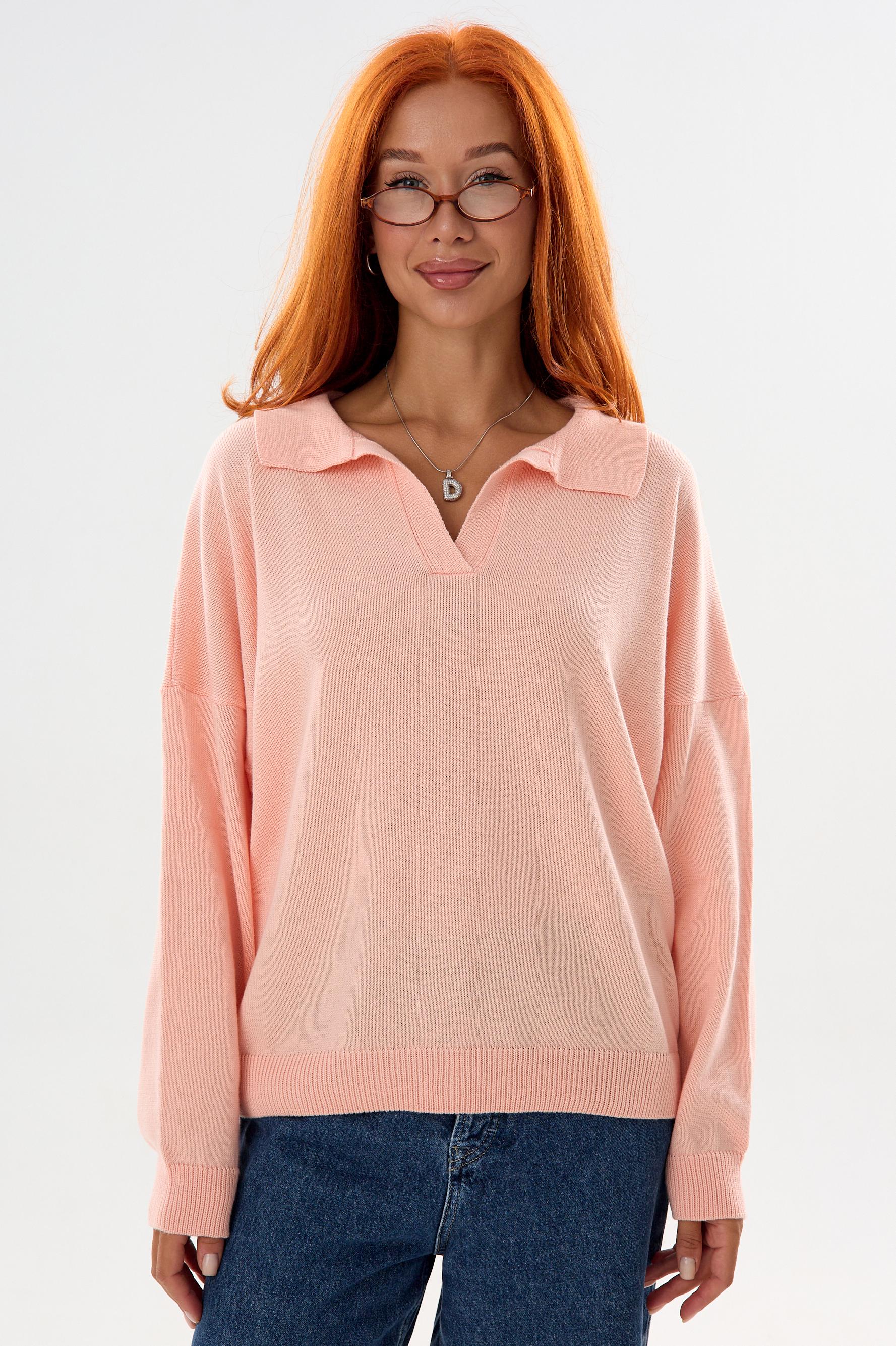 Классический, строгий женский джемпер Феникс. Универсальная модель с отложным воротничком, длинными рукавами с манжетами. Удобный и практичный джемпер на каждый день в холодное время года.