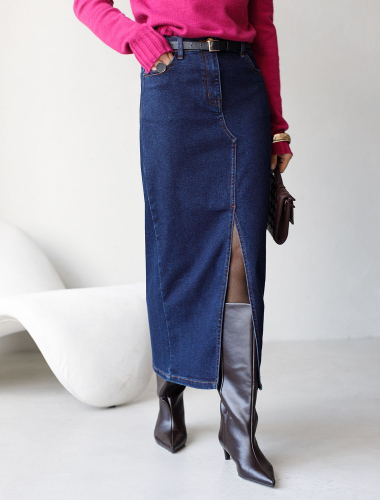 Джинсовая юбка из плотной эластичной джинсы 13OZ. D56.124 темно-синий