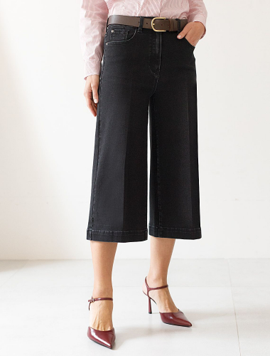 Лаконичная джинсовая юбка красивого синего цвета из эластичного денима идеально подходит для создания женственного образа в любое время года, особенно в осенний период. Прямой фасон с высокой посадкой формирует аккуратный силуэт, подчеркивая достоинства фигуры и обеспечивая комфорт при ходьбе. Контрастные швы, отрезанный гладкий край понизу без подгибки и легкая декоративная стирка добавляют современности образу. Особенностью является разрез , который делает повседневную юбку более динамичной и удобной для прогулок или работы в офисе.