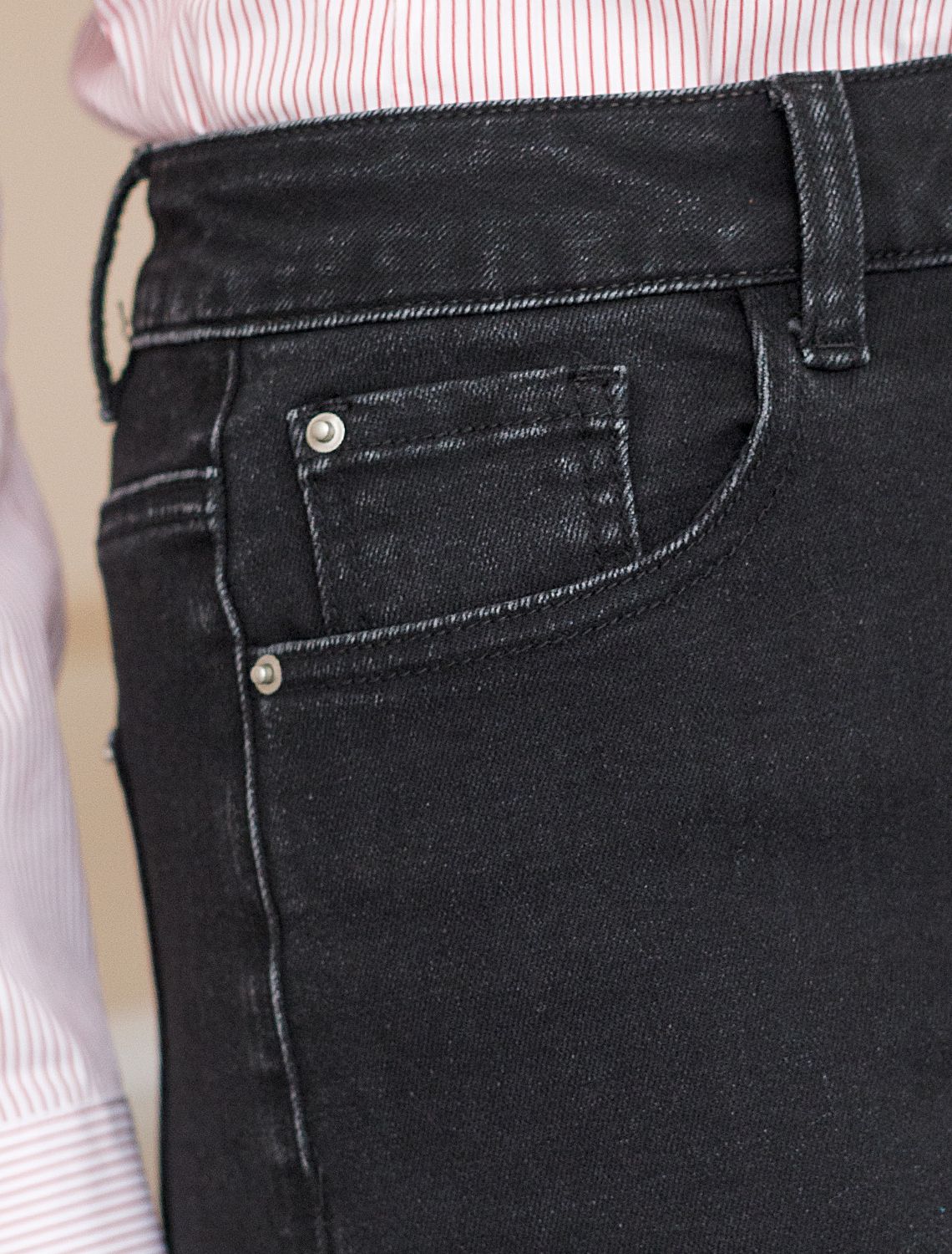 Свободные джинсовые бермуды черного цвета из эластичного денима обеспечивают комфорт и стиль в повседневном образе. Длинные классические шорты с пятью карманами выполнены с широким подгибом по низу и со стрелками по всей длине, что эффектно удлиняет ноги и визуально стройнит силуэт. Правильная посадка и классический фасон подходит как для маленьких, так и для больших размеров. Материал эластичен, благодаря чему шорты отлично садятся по фигуре и не сковывают движения, обеспечивает долговечность изделия, сохраняя первоначальный вид даже после многократных стирок и активного использования. Шорты дополнены качественной фуртитурой и брендированным патчем из эко-кожи на поясе.