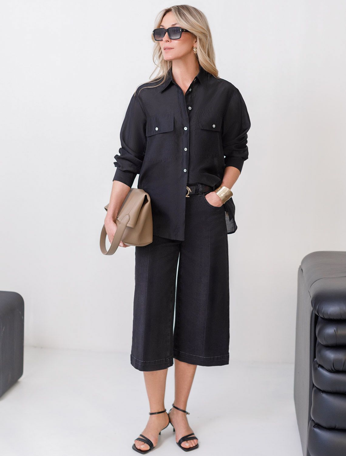 Расклешенные шорты отличаются женственным кроем, такие бермуды легко комбинируются с различными элементами гардероба — от легких футболок до стильных рубашек, свитеров, позволяя создавать разнообразные образы как для повседневной носки, так и для отдыха. Сочетайте такие трендовые бермуды с высокими сапогами для создания классического осеннего образа или с обувью на плоском ходу для более расслабоенного в теплое время года. Эти повседневные шорты незаменимы в гардеробе каждой современной девушки и женщины.