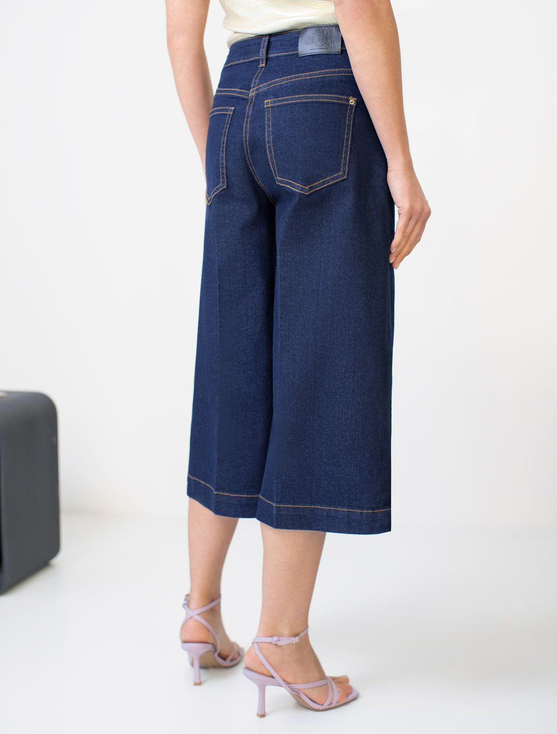 Свободные джинсовые бермуды насыщенного темно-синего цвета из эластичного денима обеспечивают комфорт и стиль в повседневном образе. Длинные классические шорты с пятью карманами выполнены с широким подгибом по низу и со стрелками по всей длине, что эффектно удлиняет ноги и визуально стройнит силуэт. Правильная посадка и классический фасон подходит как для маленьких, так и для больших размеров. Материал эластичен, благодаря чему шорты отлично садятся по фигуре и не сковывают движения, обеспечивает долговечность изделия, сохраняя первоначальный вид даже после многократных стирок и активного использования. Шорты дополнены качественной фуртитурой и брендированным патчем из эко-кожи на поясе.