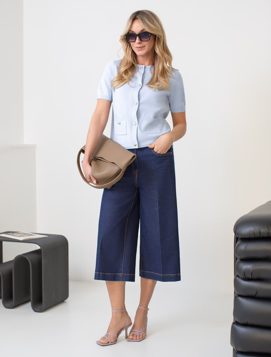 Расклешенные шорты отличаются женственным кроем, такие бермуды легко комбинируются с различными элементами гардероба — от легких футболок до стильных рубашек, свитеров, позволяя создавать разнообразные образы как для повседневной носки, так и для отдыха. Сочетайте такие трендовые бермуды с высокими сапогами для создания классического осеннего образа или с обувью на плоском ходу для более расслабоенного в теплое время года. Эти повседневные шорты незаменимы в гардеробе каждой современной девушки и женщины.