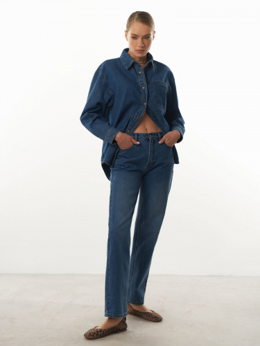 Прямой силуэт и плотный деним — это классика. Правильные джинсы мы надеваем, не раздумывая, с джемпером, водолазкой или толстовкой — они вписываются в любой образ. Функциональные детали: застежка на молнию и пуговицу, шлевки для ремня, 5 карманов.Изделие имеет классическую отстрочку ниткой медного цвета. Для модели выбрали прочный деним из 100% хлопка в классических цветах : темно-синий и светло-голубой. 100% хлопок