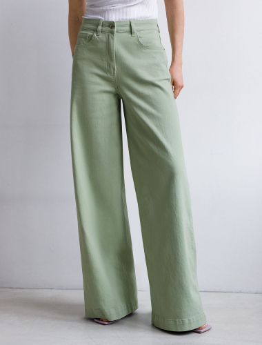 Джинсы-трубы выполнены из мягкого хлопкового денима с эластаном. Модель свободного кроя с посадкой на талии визуально вытягивает силуэт и подчеркивает достоинства. Отлично впишется в расслабленные летние образы. Наличие эластана в составе способствует формустойчивости и комфортной носке. Изделие дополнено брендированным патчем из эко-кожи и сочетается в костюме с курткой D51.033