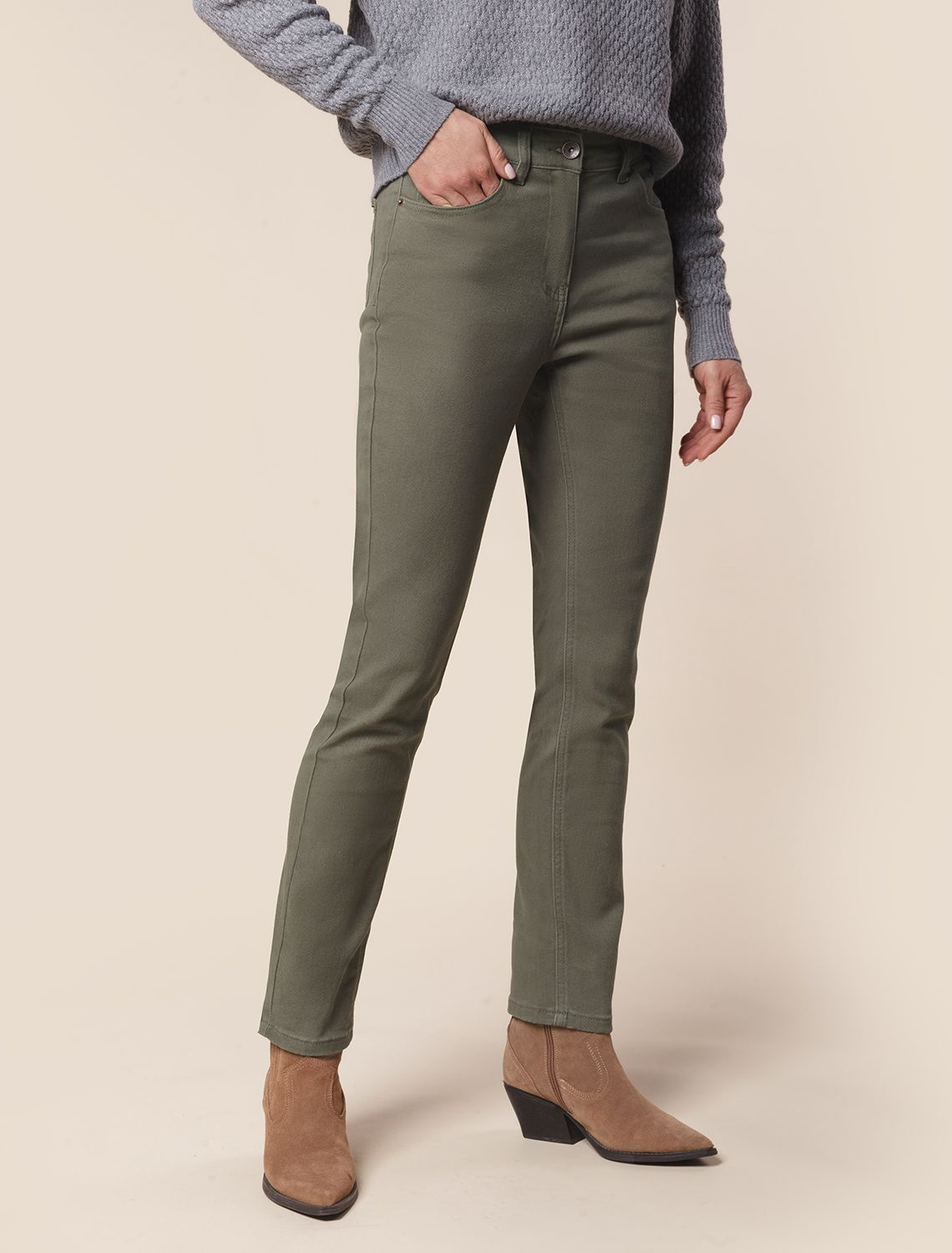 Джинсы прямого кроя выполнены из эластичного денима. Изделие комфортно садится по фигуре и не сковывает движения. Модель хорошо комбинируется с вязаным трикотажем, блузками, лонгсливами, свитшотами. Как альтернатива брюкам, в нестрогий офисный дресс-код. Изделие дополнено высококачественной фурнитурой с фирменным логотипом бренда. темно-оливковый