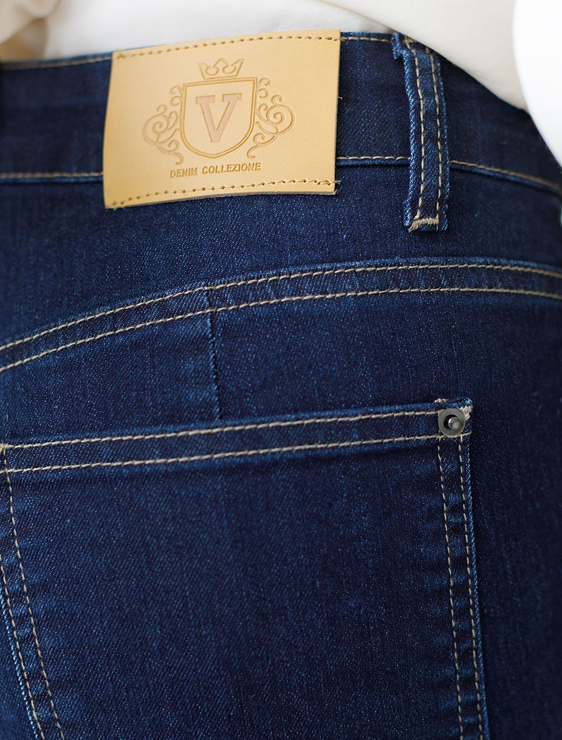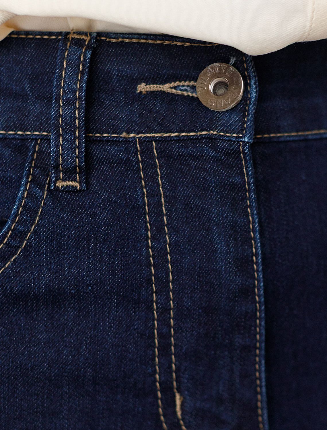 Джинсы клеш от колена глубокого темно-синего цвета выполнены из эластичного денима средней плотности 10 OZ, который отлично тянется и мягко садится по фигуре. Эластичный материал дарит свободу движений, а облегченная ткань делает эти джинсы идеальным выбором на каждый день. Клеш от колена выгодно вытягивает силуэт, визуально удлиняет ноги и подчеркивает округлые бедра, создавая женственный образ без лишних усилий. Джинсы подходят на большие размеры, позволяя чувствовать себя уверенно, специальный крой выгодно выделяет достоинства и мягко маскирует возможные нюансы фигуры. Расклешенные джинсы легко впишутся в гардероб, дополнят повседневный или более яркий образ. Джинсы подходят тем, кто ценит уверенность в себе и всегда выбирает лучшее для своей фигуры.
