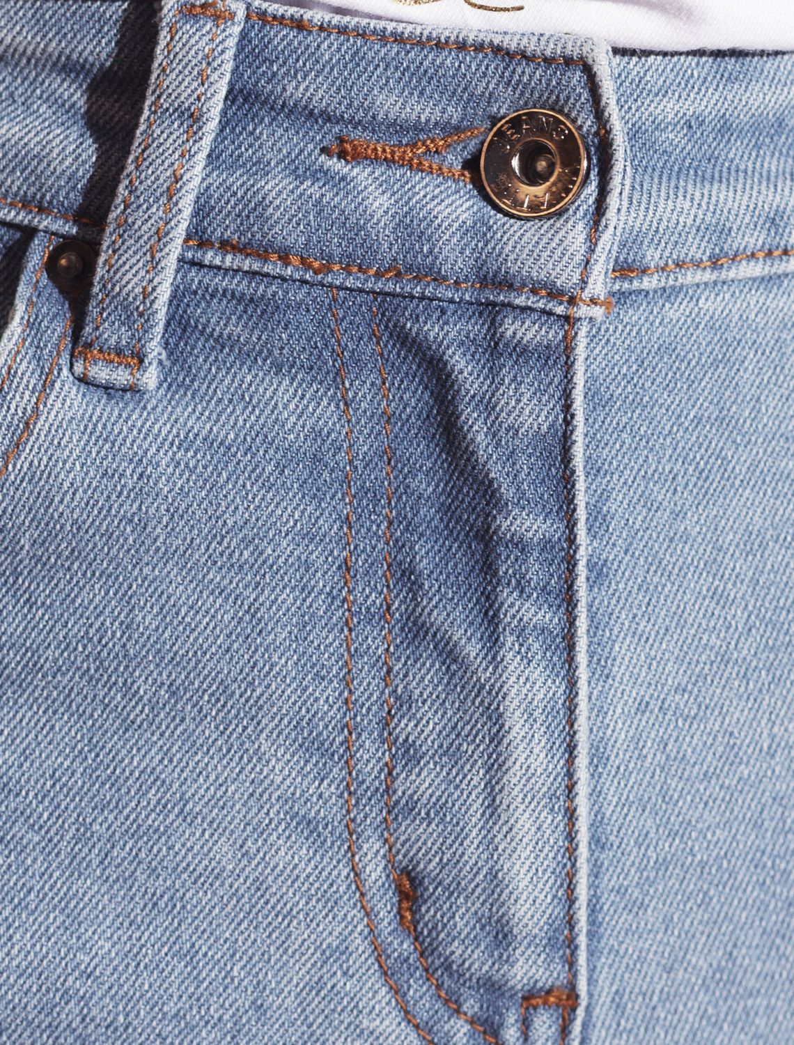 Стильные джинсы трубы голубого цвета прямого кроя выполнены из эластичного денима плотностью 12,4 OZ, что подходит для холодной и прохладной погоды. После пошива изделие подвергли специальному виду вошинга — salt-stone washing (солт-стоун вошинг), что дословно значит стирка с каменной солью. Такой вид вошинга позволяет получить стильные потертости на голубых оттенках денима. Джинсы правильного кроя визуально вытягивают силуэт, благодаря эластану в составе аккуратно садятся на любую фигуру, подчеркивая достоинства и обеспечивают максимальный комфорт в течение дня, не сковывая движения. Широкая размерная линейка подходит для разных типов фигур: свободные джинсы комфортны как для обладательниц пышных форм, так и для худеньких. Джинсы идеально держат форму даже при активном движении и не вытягиваются, что делает их особенно удобными для повседневной носки. Качественная надежная фурнитура делает эти джинсы премиальными.