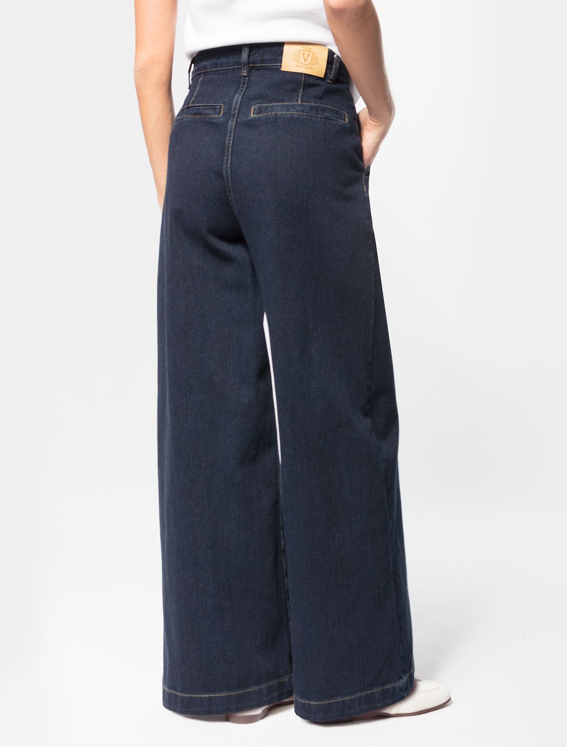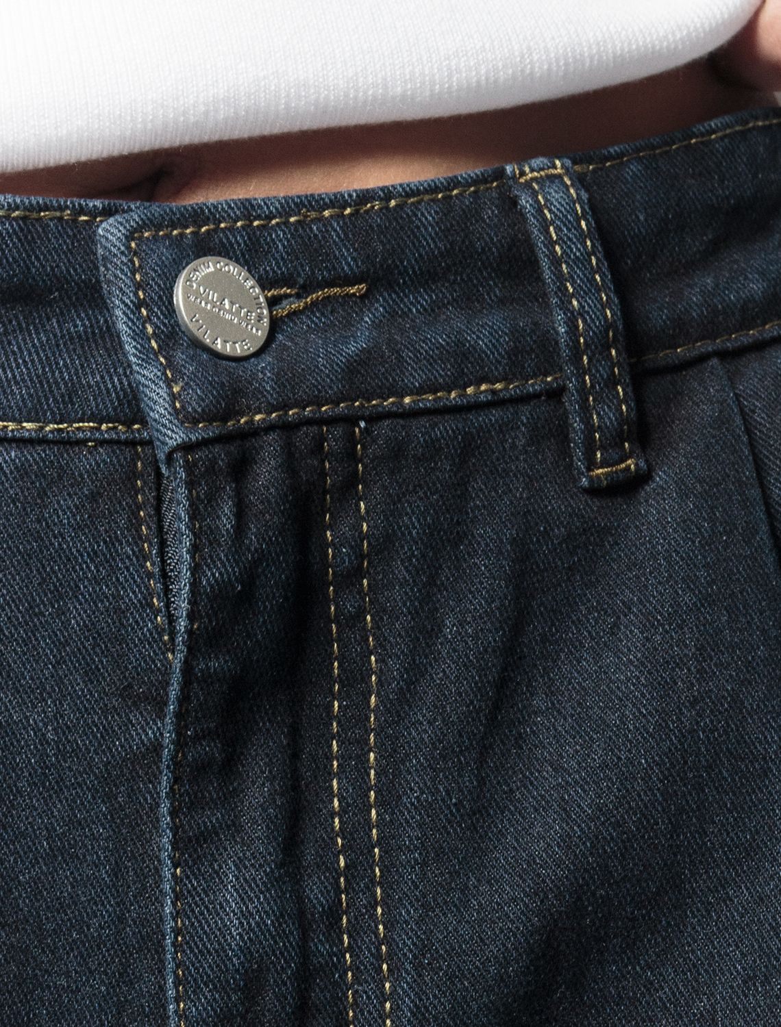 Джинсы "трубы" из эластичного денима. Пропорции модели дополнительно увеличивает пара защипов спереди под поясом, а ее расслабленный характер подчеркивает легкая стирка. Свободный крой подходит для любой фигуры, скрывая любые недостатки и подчёркивая достоинства. За счет эластана ткань не вытягивается и сохраняет безупречный внешний вид в течении долгого времени. темно-синий
