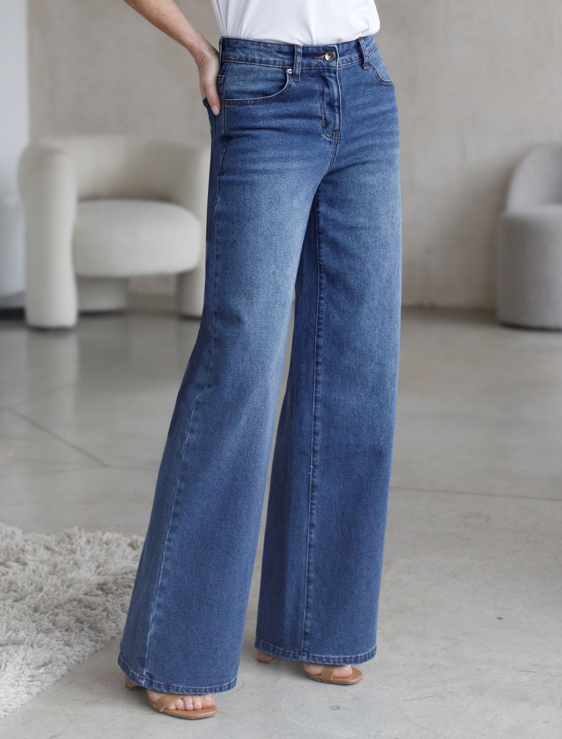 Стильные джинсы трубы синего цвета прямого кроя выполнены из эластичного денима плотностью 12,4 OZ, что подходит для холодной и прохладной погоды. После пошива изделие подвергли специальному виду вошинга — salt-stone washing (солт-стоун вошинг), что дословно значит стирка с каменной солью. Такой вид вошинга позволяет получить стильные потертости на синих оттенках денима. Джинсы правильного кроя визуально вытягивают силуэт, благодаря эластану в составе аккуратно садятся на любую фигуру, подчеркивая достоинства и обеспечивают максимальный комфорт в течение дня, не сковывая движения. Широкая размерная линейка подходит для разных типов фигур: свободные джинсы комфортны как для обладательниц пышных форм, так и для худеньких. Джинсы идеально держат форму даже при активном движении и не вытягиваются, что делает их особенно удобными для повседневной носки. Качественная надежная фурнитура делает эти джинсы премиальными.