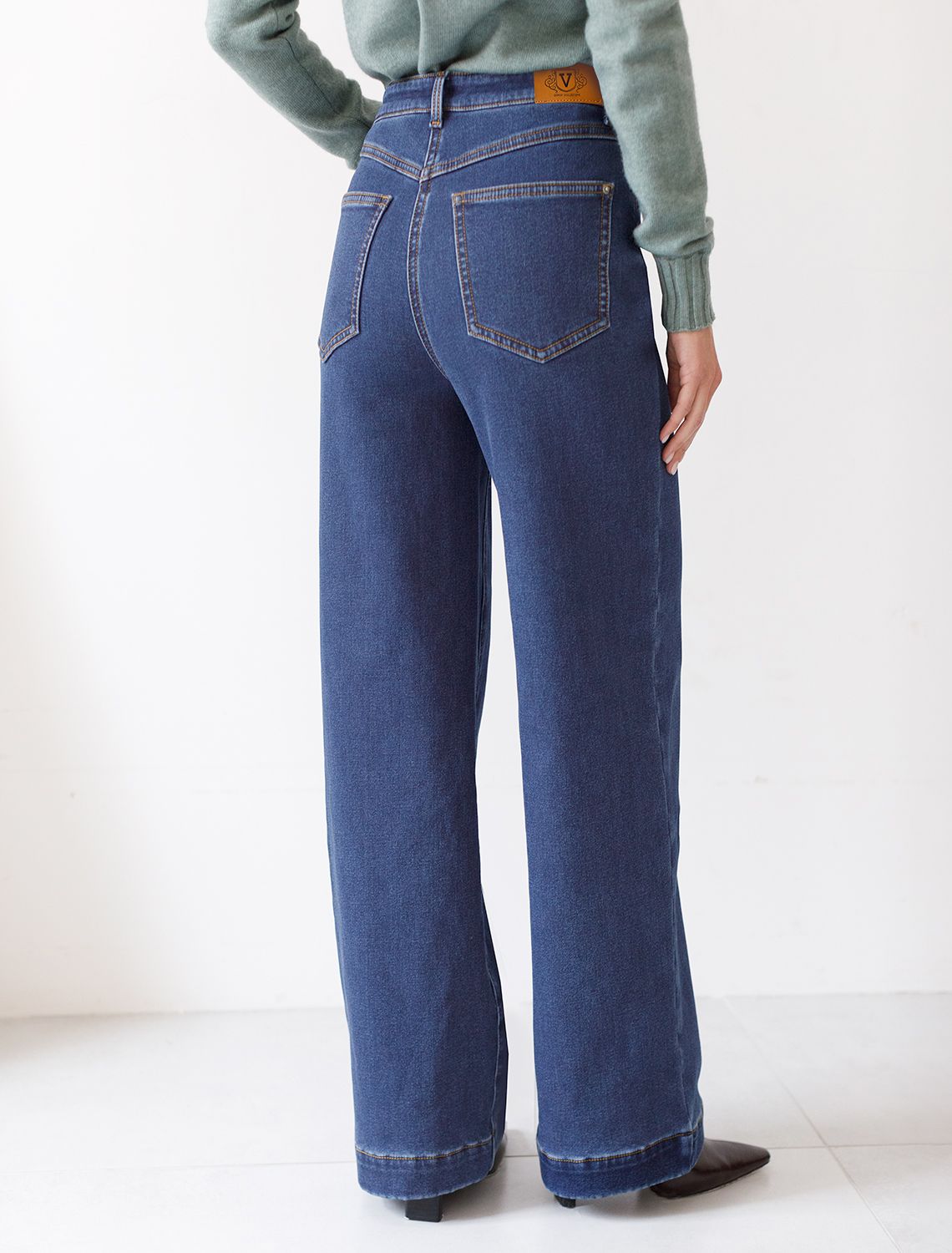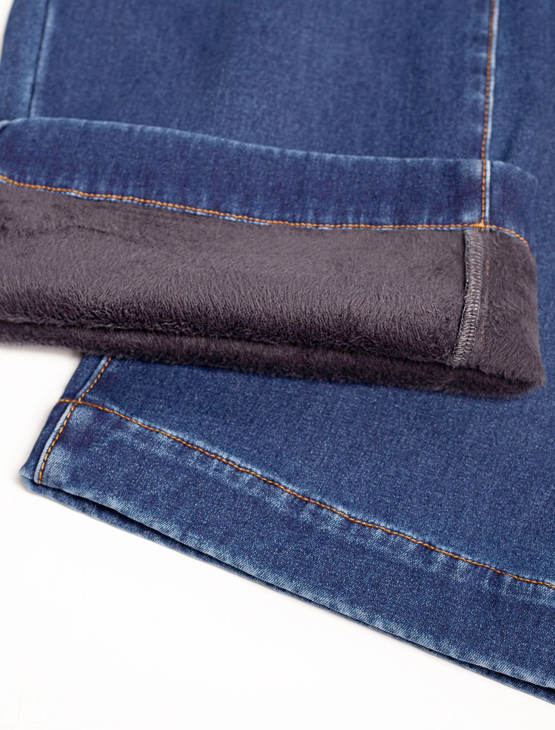 Джинсы-трубы из эластичного денима на флисе D54.157 синий