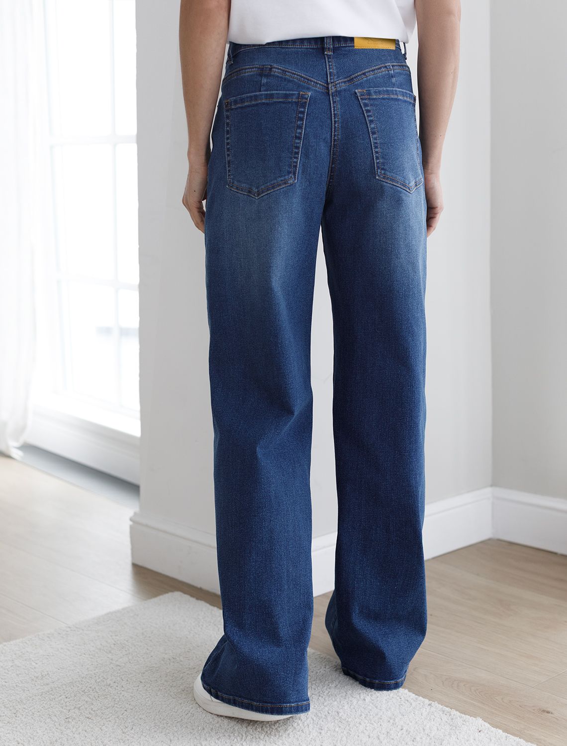 Стильные прямые джинсы синего цвета цвета прямого кроя выполнены из эластичного денима плотностью 12,6 OZ, что делает их особенно удобными для повседневной носки. При производстве джинсов применена технология «вареные швы», которая основана на локальном вымывании красителя из плотных участков ткани — сгибов и швов — за счет механического воздействия во время промышленной стирки. Стоун вошинг - энзимная стирка с камнями. Камни воздействуют на ткань, выбивая краску на швах, создавая контрастные мраморные потертости и мягкость.Легкая декоративная стирка добавляет интересный акцент и подчеркивает современный дизайн. Джинсы правильного кроя визуально вытягивают силуэт, благодаря эластану в составе аккуратно садятся на любую фигуру, подчеркивая достоинства и обеспечивают максимальный комфорт в течение дня, не сковывая движения. Широкая размерная линейка подходит для разных типов фигур: свободные джинсы комфортны как для обладательниц пышных форм, так и для худеньких. Джинсы идеально держат форму даже при активном движении и не вытягиваются после долгой носки. Качественная надежная фурнитура делает эти джинсы премиальными. Прямой крой добавляет актуальности — такой тренд отлично сочетается как с обувью на каблуке, так и на плоском ходу. Благодаря универсальному дизайну джинсы легко комбинируются с разными элементами гардероба.