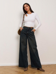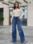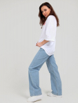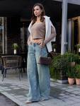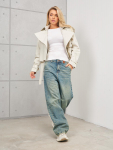 Женские ретро джинсы с пятью карманами с использованием лучших традиций 90-х. Посадка Сomfort fit ( свободные по бедру).  Супервысокая талия спереди и сзади, свободные и широкие  по всей длине. Застежка на молнии. Выполнены из слабоэластичной ткани denim comfort stretch. Светлая стирка с камнями (stone wash).  Параметры указаны для размера 28.Длина внутреннего шва  - 82,0 см.