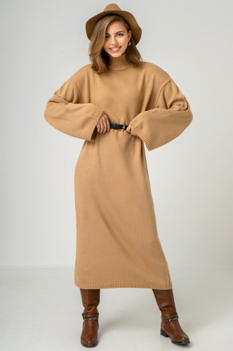Мягкая пряжа с хлопком и акрилом в составе приятно ощущается на теле и бережно согревает. Однотонное платье с горлом идеально на каждый день. Теплое платье для женщин — прекрасный вариант на осень и зиму.