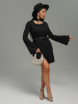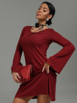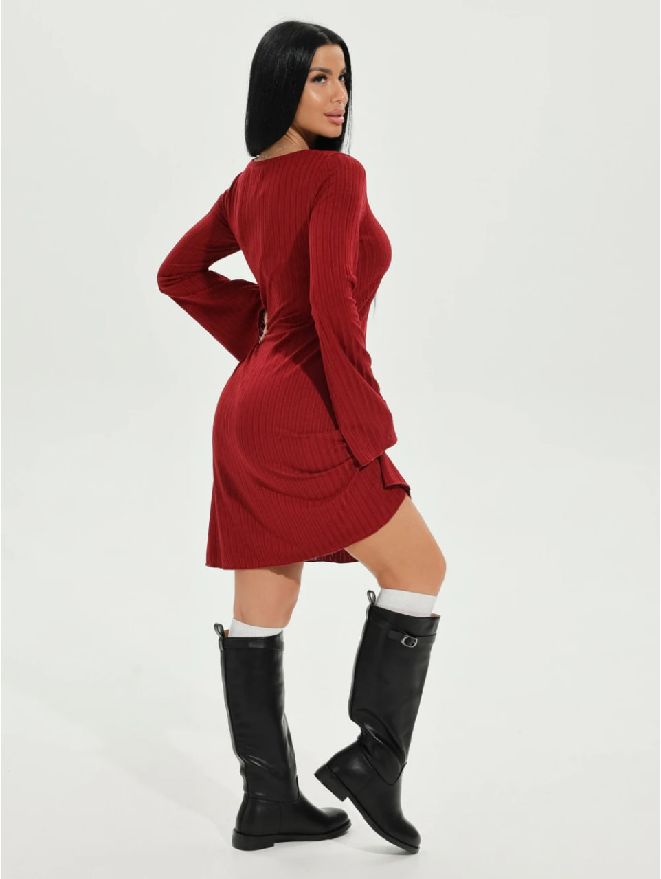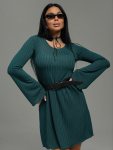 Платье из лапши с широким рубчиком, приталенное с длинным, втачным, расклешенным к низу рукавом.