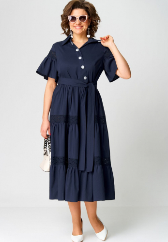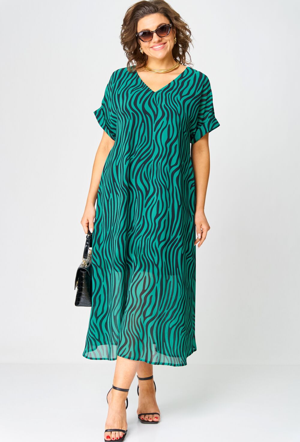 Платье женское нарядно-поседневное полуприлегающего силуэта расширенное к низу на подкладке. Выполено из шифона. Подкладка трикотажная. Вырез горловины V-образный на обтачке, рукав спущенный по низу на притачной манжете. Низ фигурный. В боковых швах обработаны разрезы. Горловина спинки с фигурным вырезом и пряжкой. декором платья служит дизайн самой ткани.