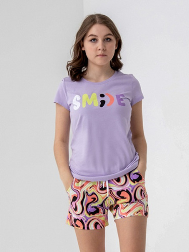 Футер, 92% хлопок, 8% эластан / Брюки с широкой резинкой по ножкам. Пояс отрезной из кашкорсе с эластаном. В поясе обработана кулиска, кругловязаный шнур с пластиковыми наконечниками вставлен в петли. Карманы в боковом шве с отстрочкой по входу в карман. У левого кармана выполнена небольшая вышивка. 1;1;1;1