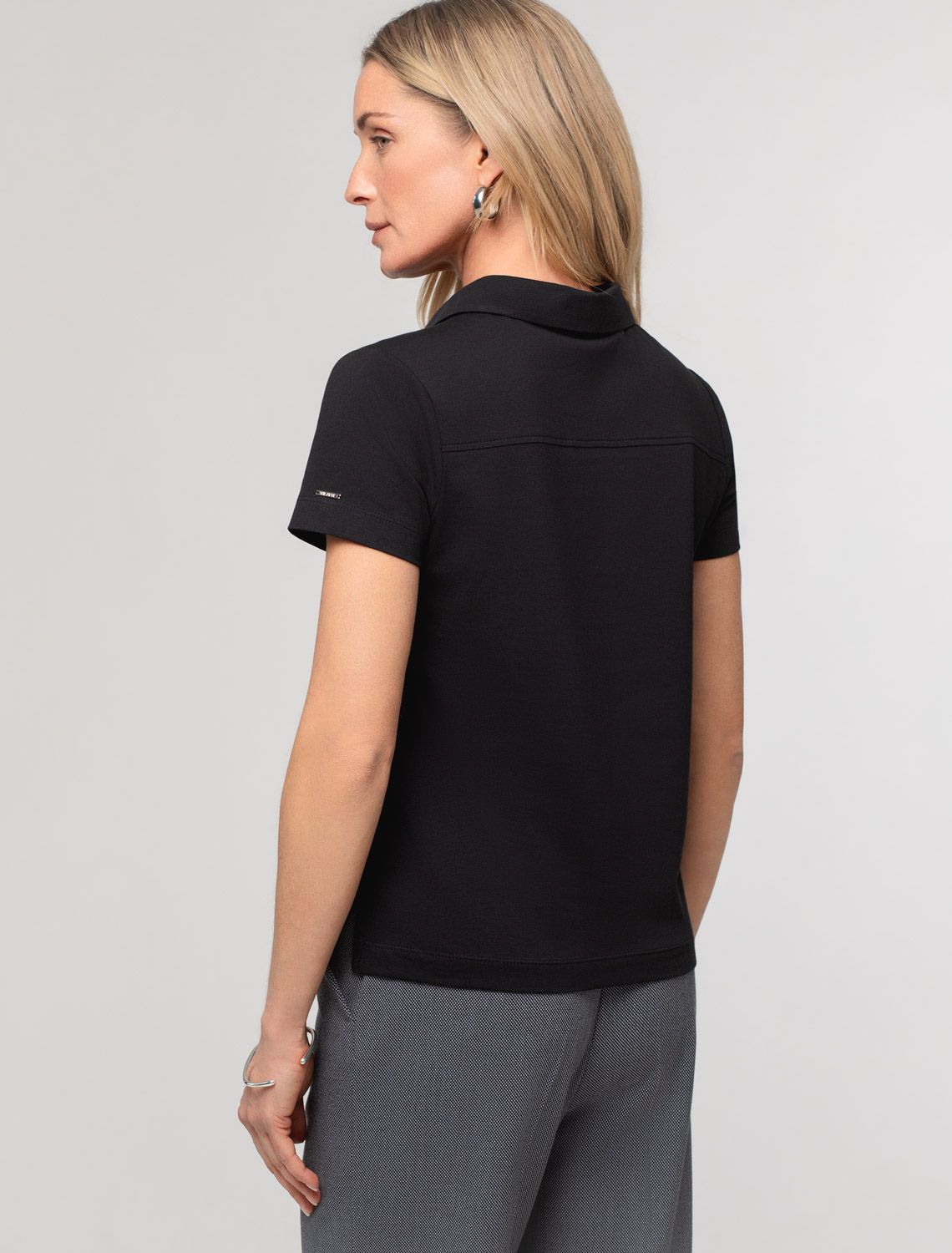 Футболка-поло выполнена из премиального хлопка. Модель украшена золотистыми пуговицами и вышитым логотипом бренда. Успешная классика на все времена. За счет эластана в составе, идеально держит форму и сохраняет внешний вид в течение договременного использования. Унивесально сочетается как с костюмными низами в деловом стиле, так и с джинсами в повседневном образе. черный