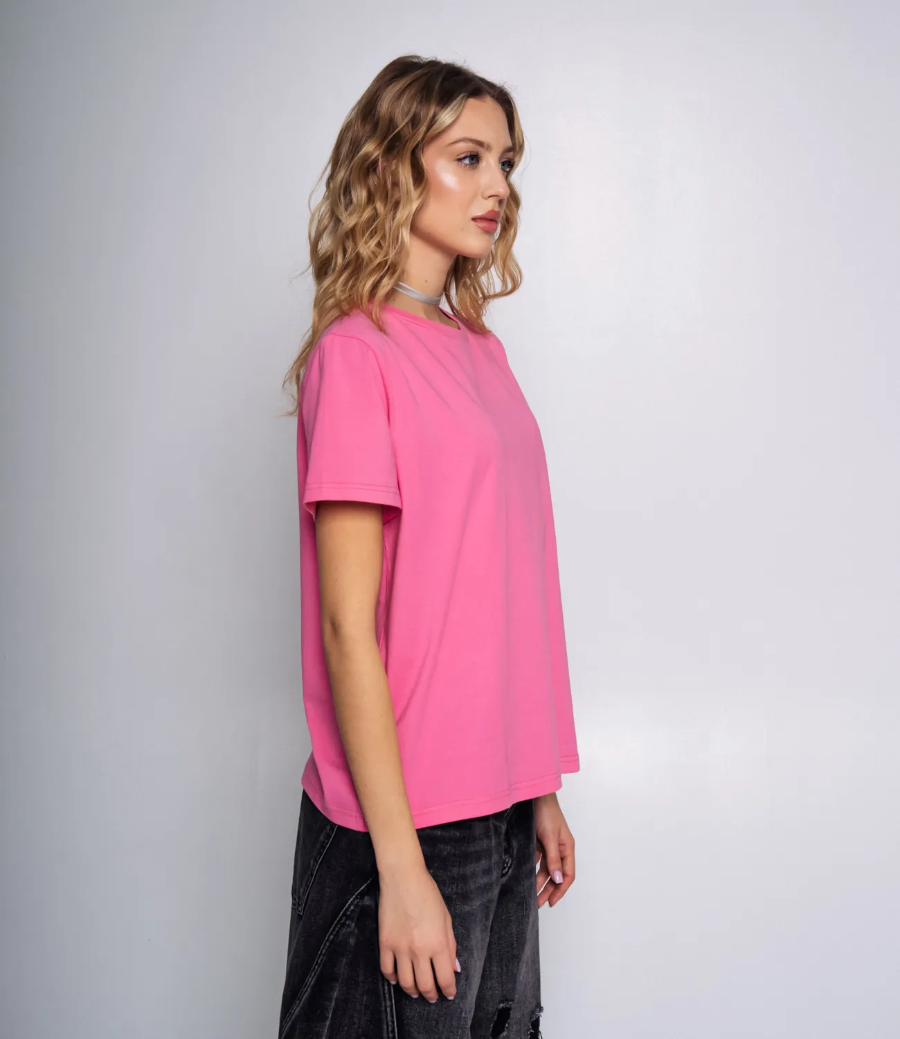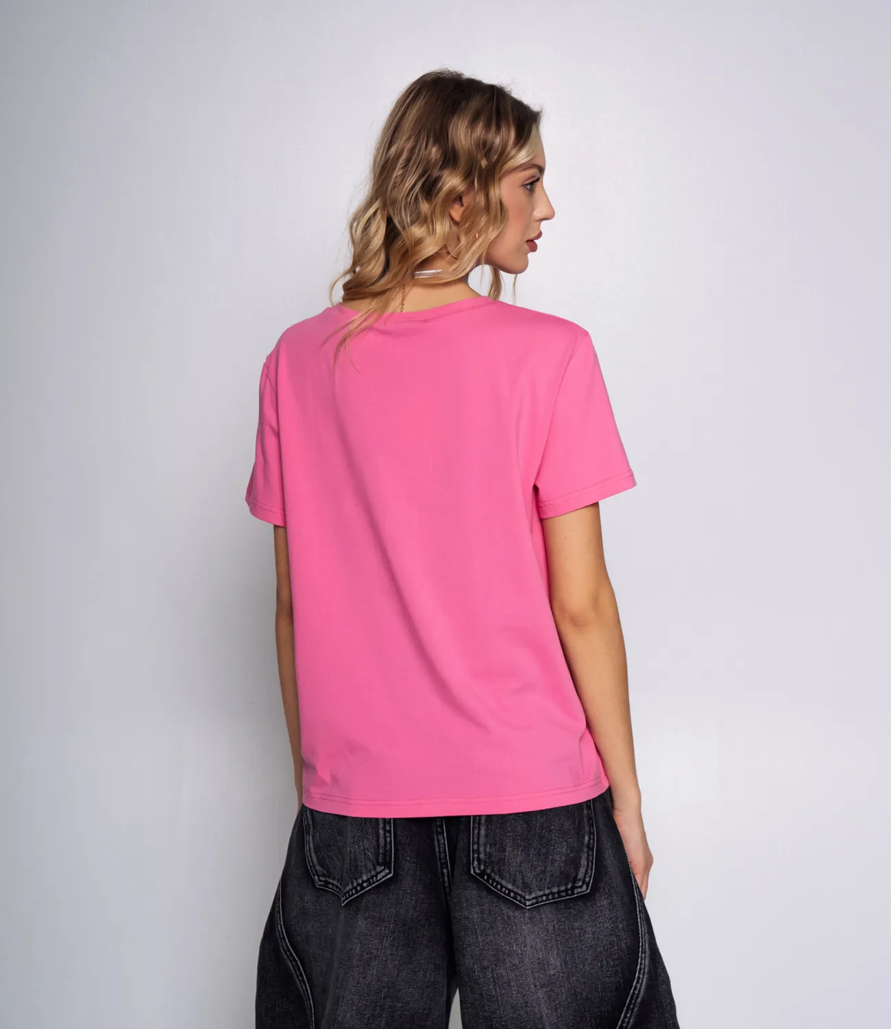 Базовая футболка - это удобный и многофункциональный предмет одежды. Данная модель приятна к телу и позволяет коже дышать. Рост 174 см, 80-58-88.
