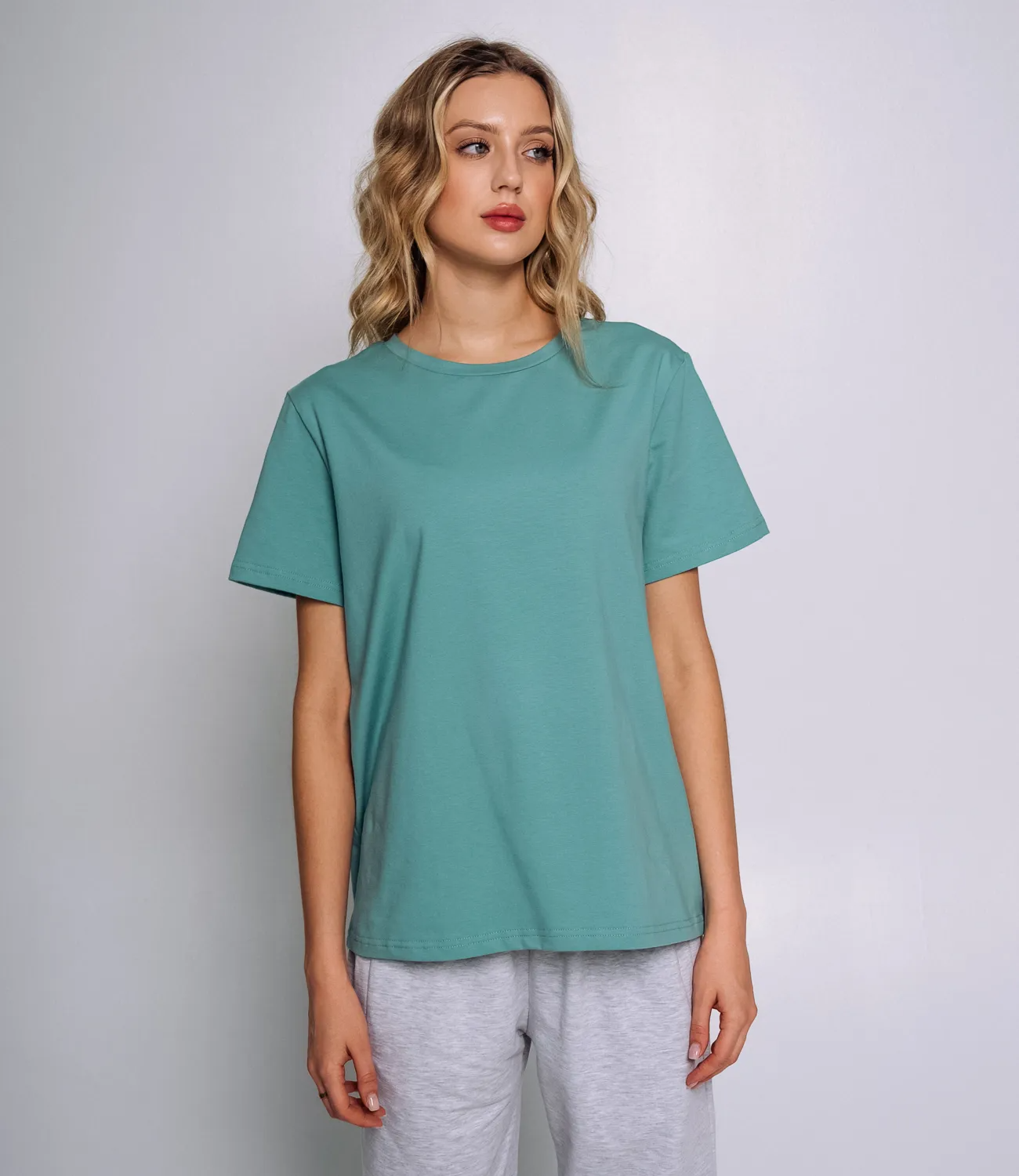 Базовая футболка - это удобный и многофункциональный предмет одежды. Данная модель приятна к телу и позволяет коже дышать. Рост 174, 80-58-88.