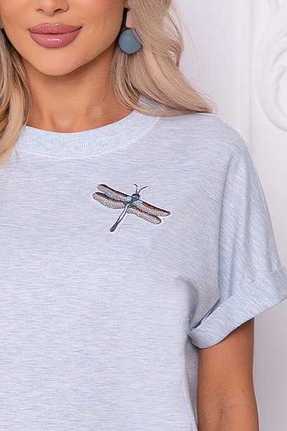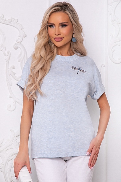 Футболка из трикотажного полотна свободного силуэта с отделкой из трикотажной рибаной и декоративным элементом по полочке.Ткань производство Турция-кулирная гладь и трикотаж рибана компаньон.