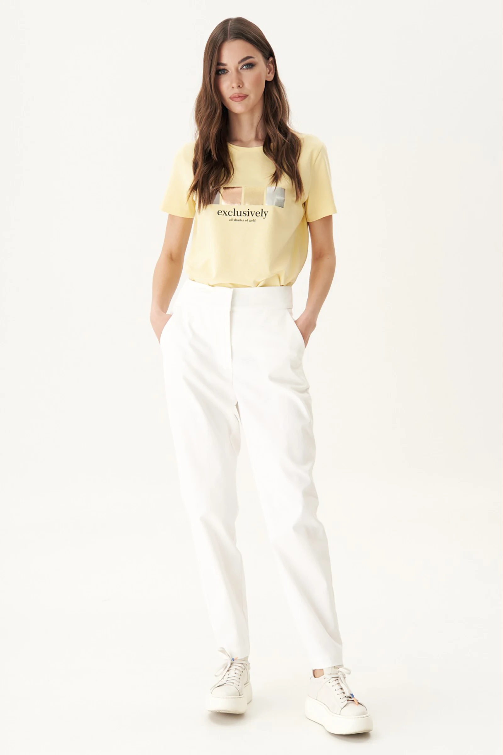Базовые футболки - это конечно хорошо, но что делать, если хочется привнести в образ яркости, иронии и немного артистизма? Лучший способ выразить себя - выбрать вариант с классным говорящим принтом. Футболка классического кроя с втачным рукавом. Длина футболки около 60 см. Длина рукава около 15 см.Состав: хлопок 96%, спандекс 4%. желтый