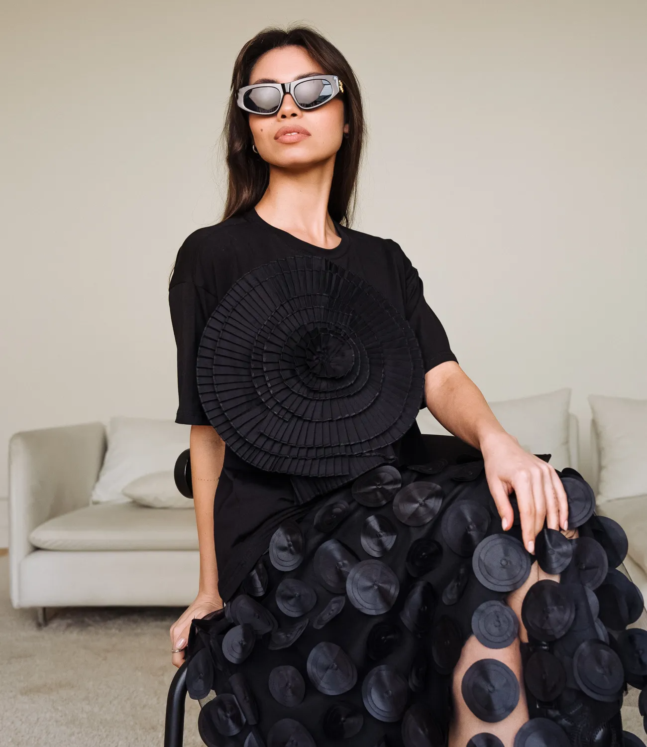Футболка – это вещь, которая подчеркивает уникальность и привлекательность каждой представительницы прекрасного пола. Данная модель футболки подойдет для любого сезона. Ее выбирают покупательницы, которые ценят сочетание идеального качества и цены. Фасон футболки подчеркивает привлекательность фигуры. Изготовитель знает, как найти уникальные и стильные решения. Для пошива выбрана ткань из 65% хлопка, 30% полиэстера и 5% эластана, которая выделяется отличным качеством. Даже после многих стирок футболка не потеряет своей первоначальной привлекательности. Вы будете ее носить с радостью. Обратите внимание на яркую деталь в виде крупного и объемного цветка. Она добавляет необычный шарм и стиль этой модели. Цвет футболки полностью соответствует фотографии на странице. Чтобы вы были уверены в размере, мы предоставили на сайте таблицу. Воспользовавшись ей, вы сможете самостоятельно снять мерки и убедиться. Предложенная нами цена является доступной. Подарите себе удовольствие быть элегантной и неповторимой с этой стильной футболкой! Рост модели 164, 83-61-89. Хлопок, Эластан, Полиэстер