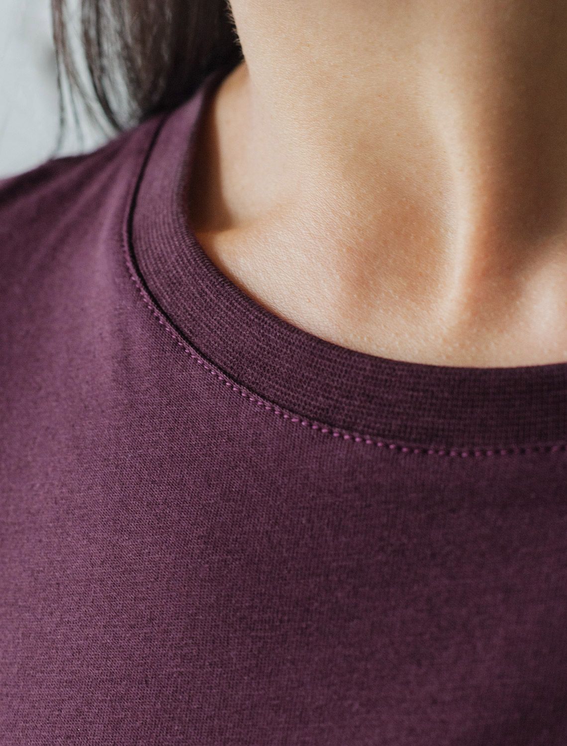 Футболка цвета бургунди идеально подходит для вечеринки и создания яркого образа. Оригинальный принт из фольги серебристого цвета придает изделию шикарный вид, который привлечет внимание на любом мероприятии. . Модель с круглым вырезом и классическим коротким рукавом обеспечивает свободу движений и комфорт в носке. Такой фасон изделия подходит на большие размеры, гармонично сидит на фигуре и помогает создать легкий акцент на достоинствах. Аккуратный круглый вырез красиво подчеркивает шею и делает образ элегантным, сохраняя актуальность для разных случаев — от рабочих встреч до вечерних прогулок и праздничных мероприятий.