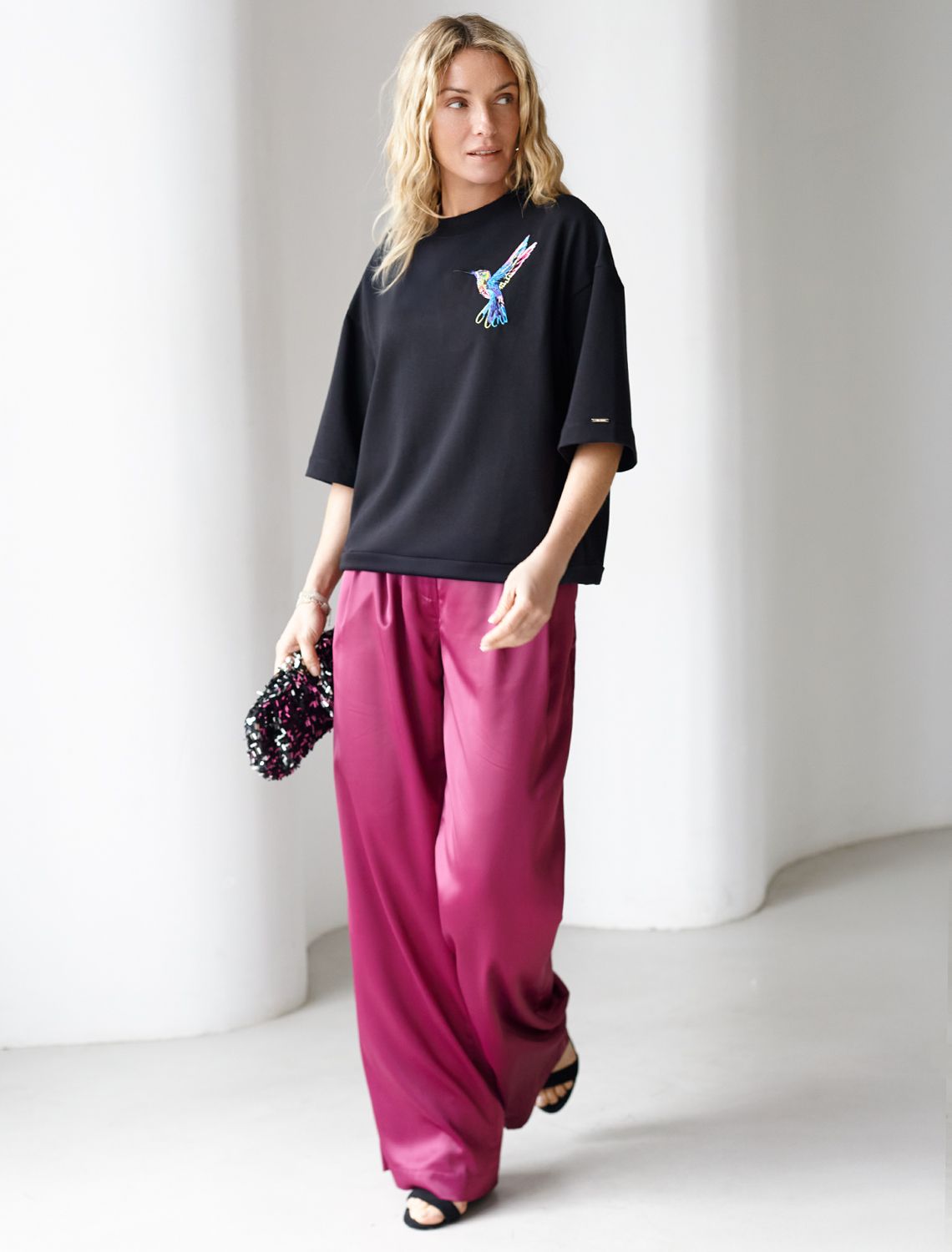 Футболка из тонкого эластичного футера со шнуром внизу D49.095 черный_колибри