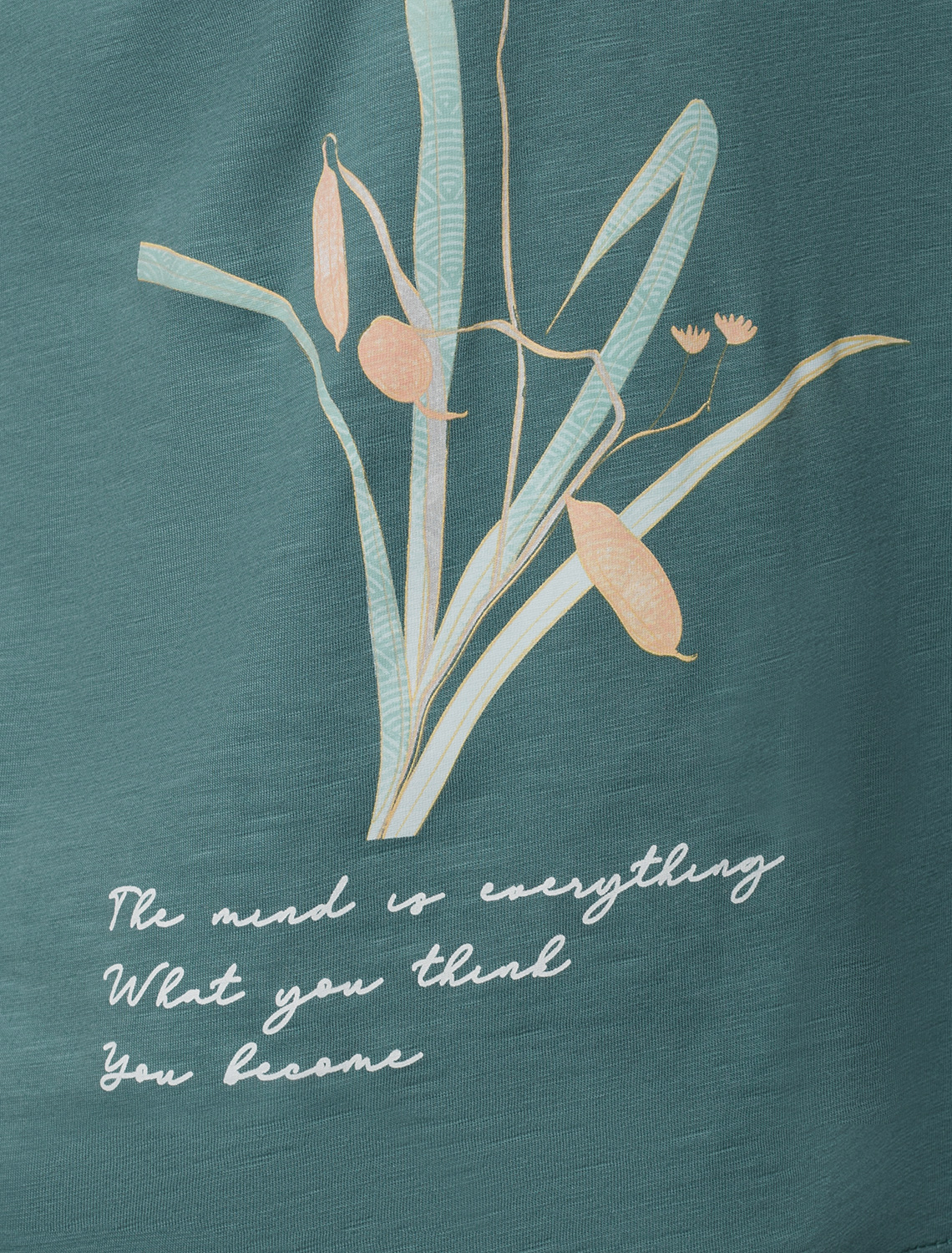 Перевод принта: The mind is everything, what you think you become - мысли материальны, ты то, о чем ты думаешь. Футболка выполнена из фактурного полотна из 100% хлопка. Модель с лаконичным авторским принтом легко впишется в любой весенне-летний гардероб. Ткань имеет характерный рисунок черточки за счет сочетания разных волокон хлопка 140-150 г. Хорошо держит форму и поддерживает комфортный микроклимат в течении дня. полынь_the mind