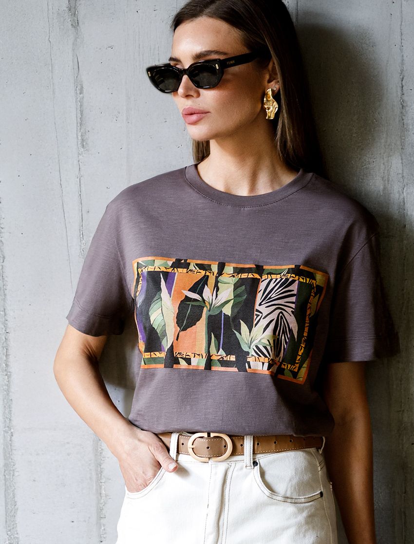 Было:1490руб.АКЦИЯ:1090руб.Футболка из фактурного полотна с авторским принтом