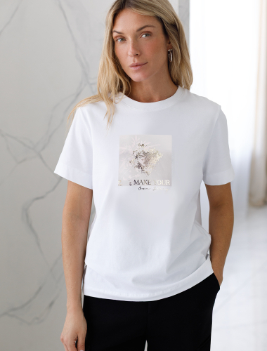 Рост 170, бюст 83, талия 64, бедра 88 Базовая однотонная футболка из премиального хлопка. Горловина выполнена из рибаны в тон изделия, Добавление эластана в состав изделия способствует формоустойчивости. Самое высокое качество хлопковых волокон обеспечивает комфорт в любое время года. Идеально держит форму и сохраняет внешний вид в течение долговременного использования. Универсальная базовая вещь для ваших стилистических решений. Изделие дополнено металлическим логотипом бренда на рукаве.