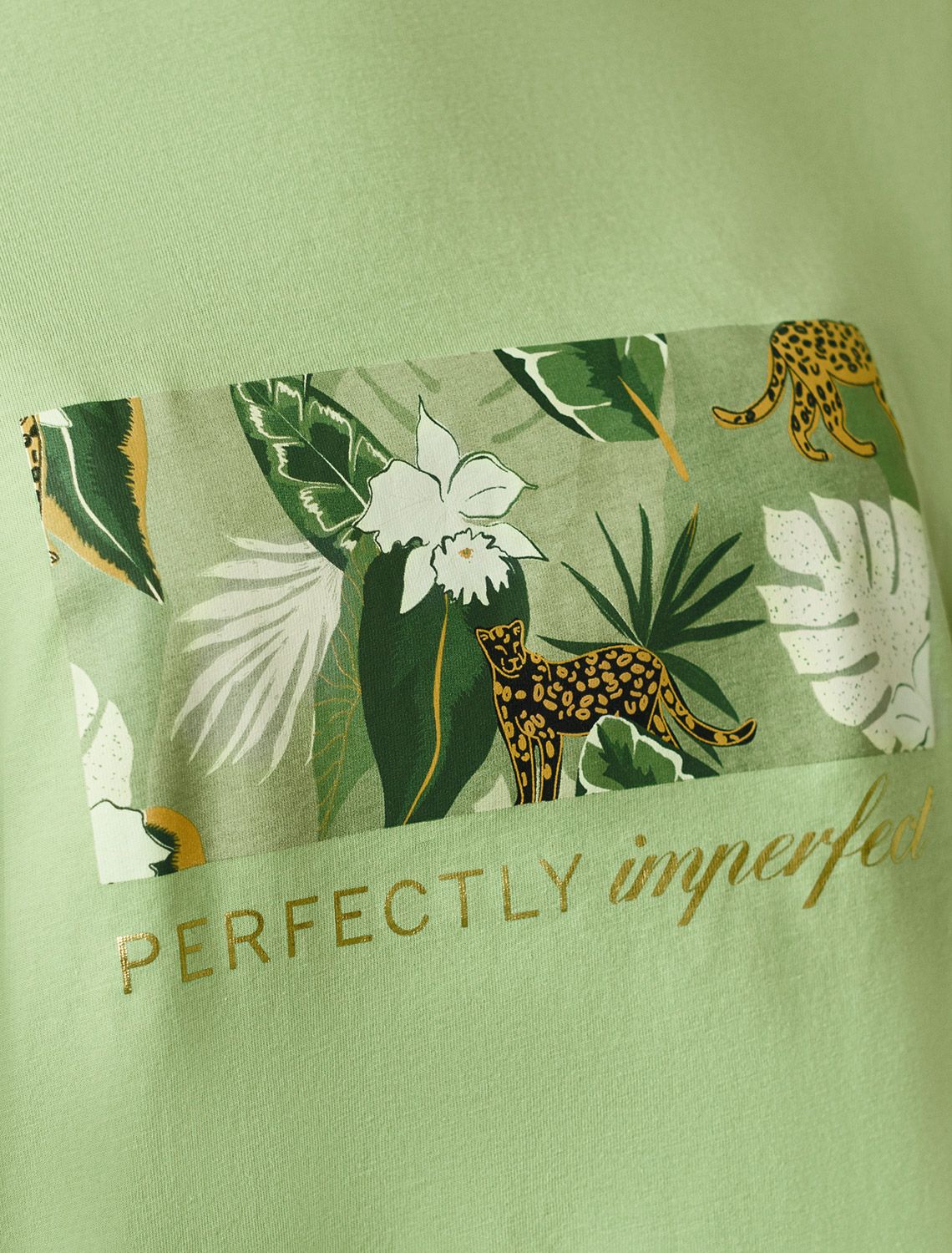 Перевод принта: "Perfectly imperfect - идеально несовершенная". Футболка прямого кроя выполнена из 100% хлопка. Базовая модель с лаконичным авторским принтом легко впишется в повседневный гардероб. Хорошо держит форму и обеспечивает комфортный микроклимат в течение дня. фисташковый_perfectly_imperfect