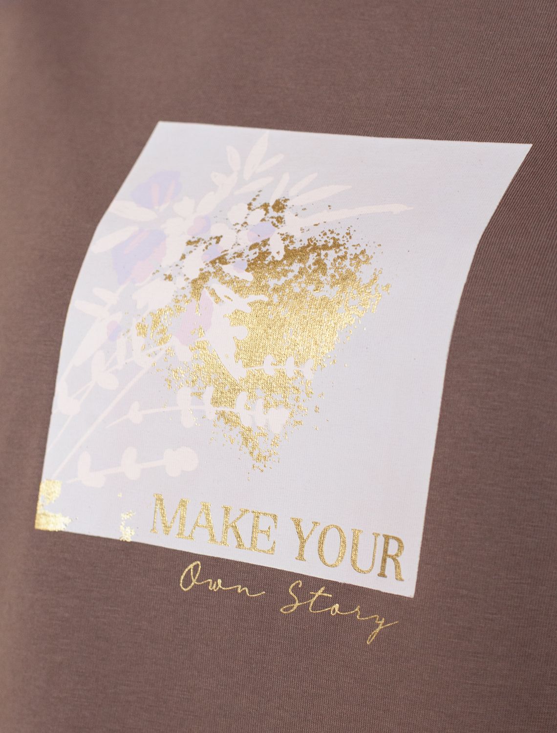 Футболка из премиального хлопка с авторским принтом D49.110 т. кофейный_own story