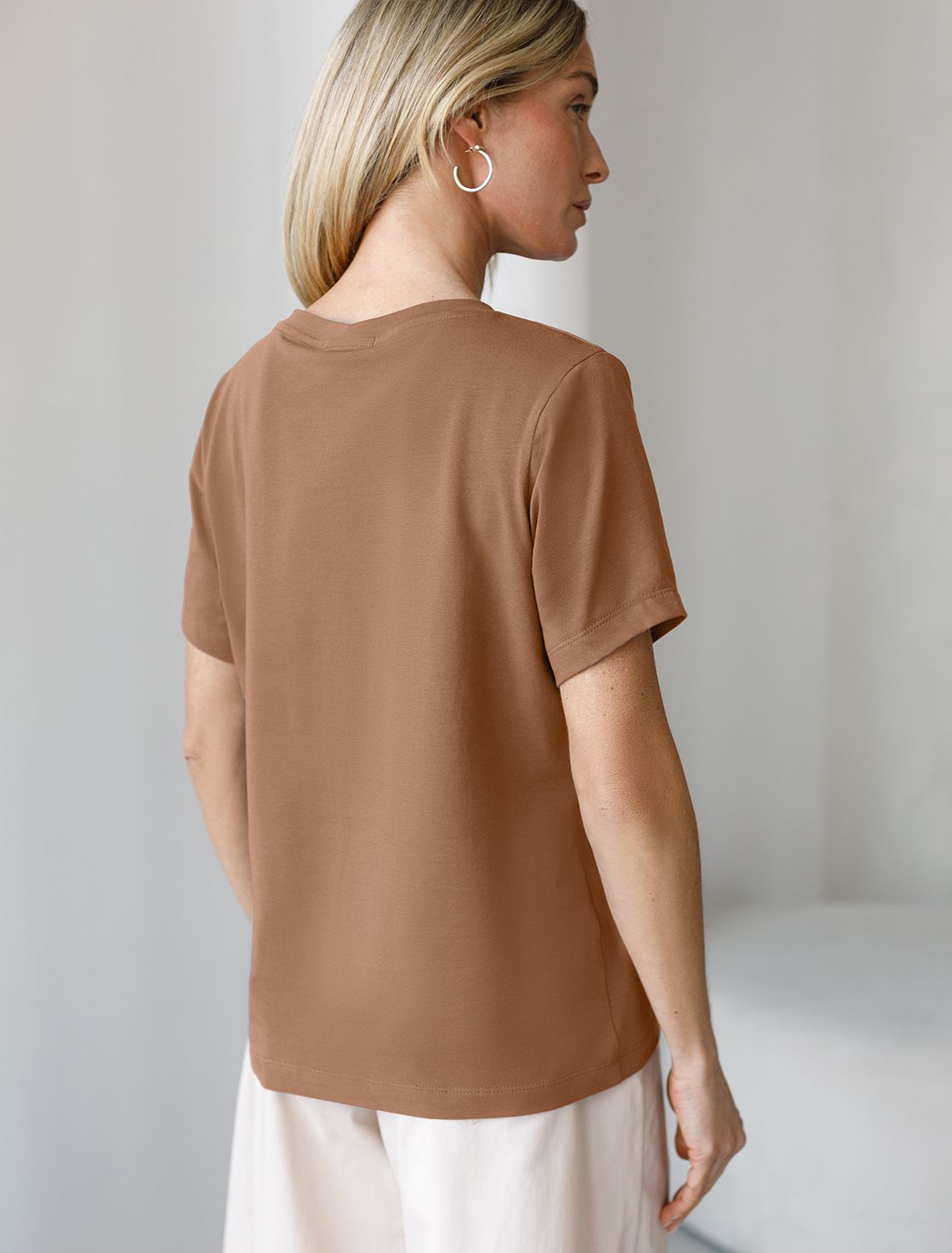 Футболка из премиального хлопка с эластаном D49.096 карамель