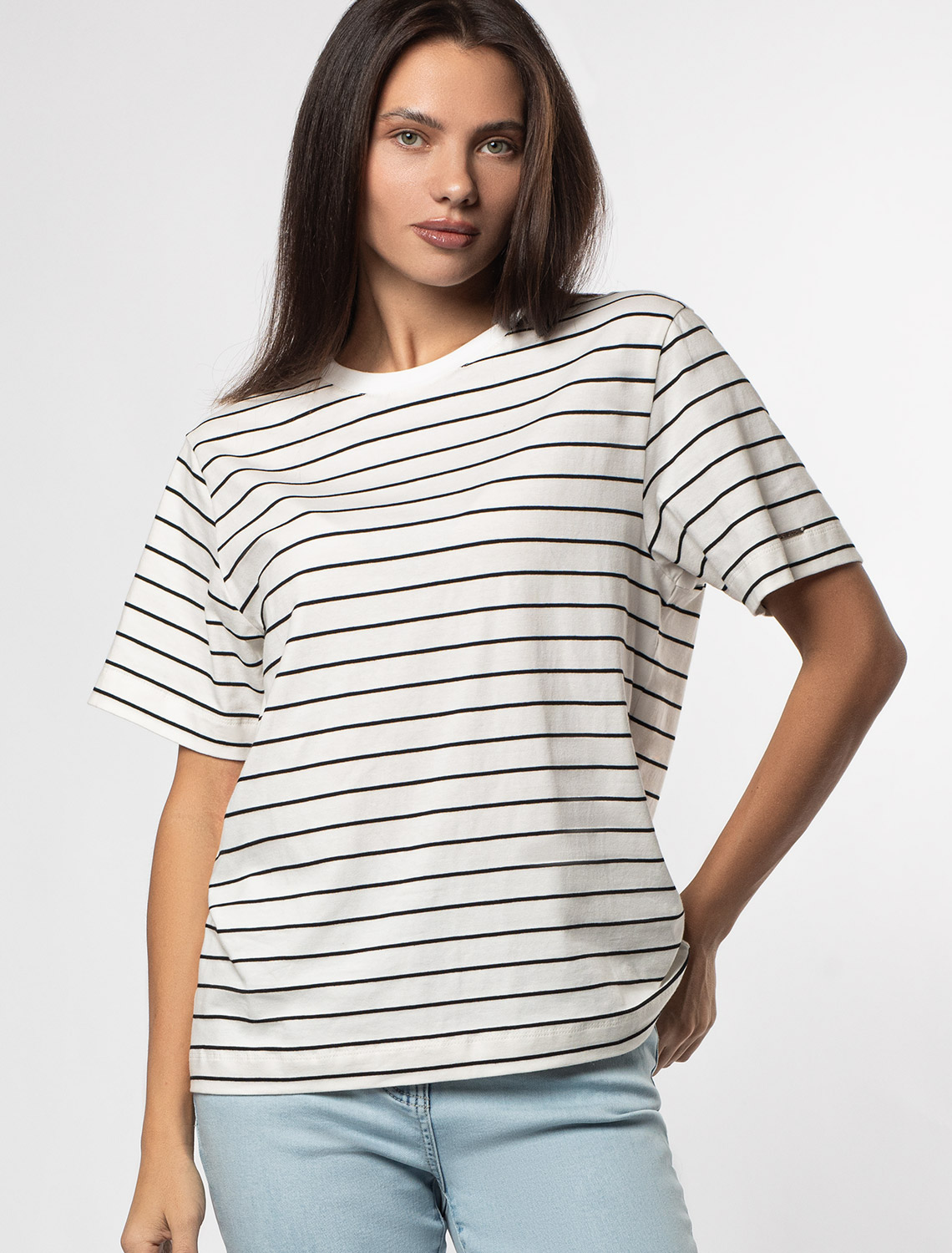 Футболка из премиального хлопка с эластаном D49.983 белый-черный полоса
