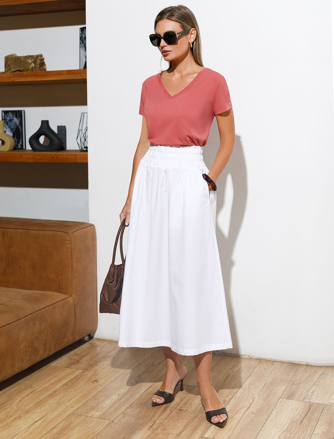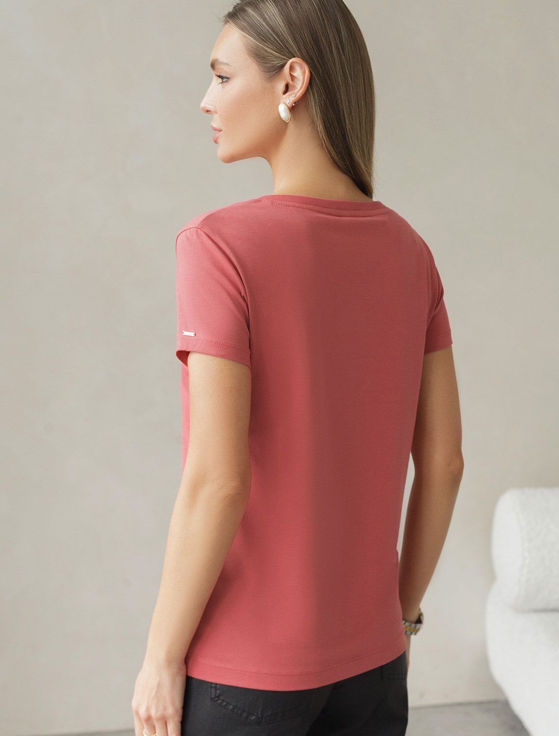 Футболка из премиального хлопка с V-образным вырезом D49.109 терракота