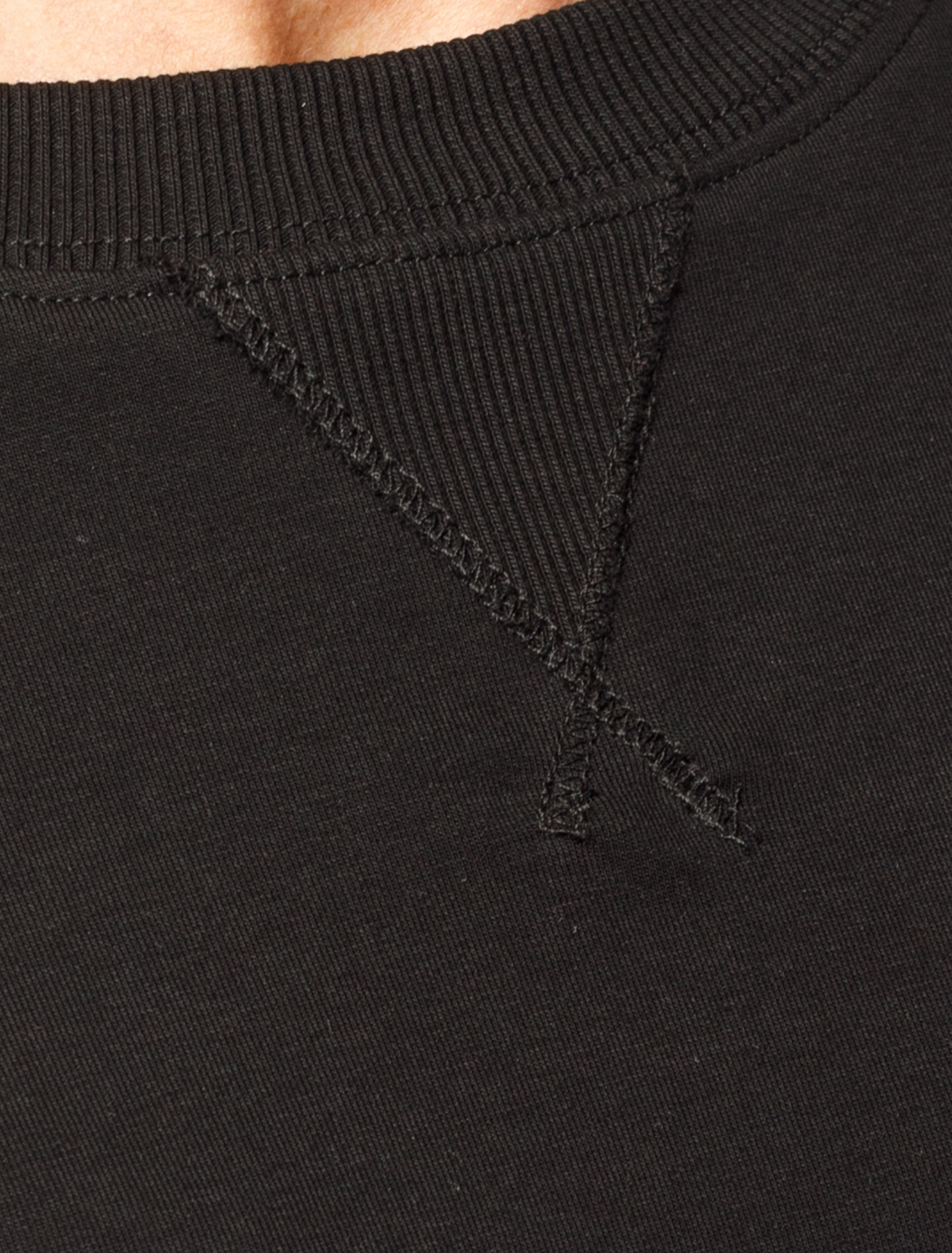 Футболка свободного кроя со спущенным плечом выполнена из футера двухнитки с эластаном. Лаконичный принт нанесен фактурной краской. Эластичный материал гарантирует комфорт и формоустойчивость. Сочетается в костюме с брюками D44.138, D44.139 и шортами D48.008. Изделие дополнено металлическим логотипом бренда. черный