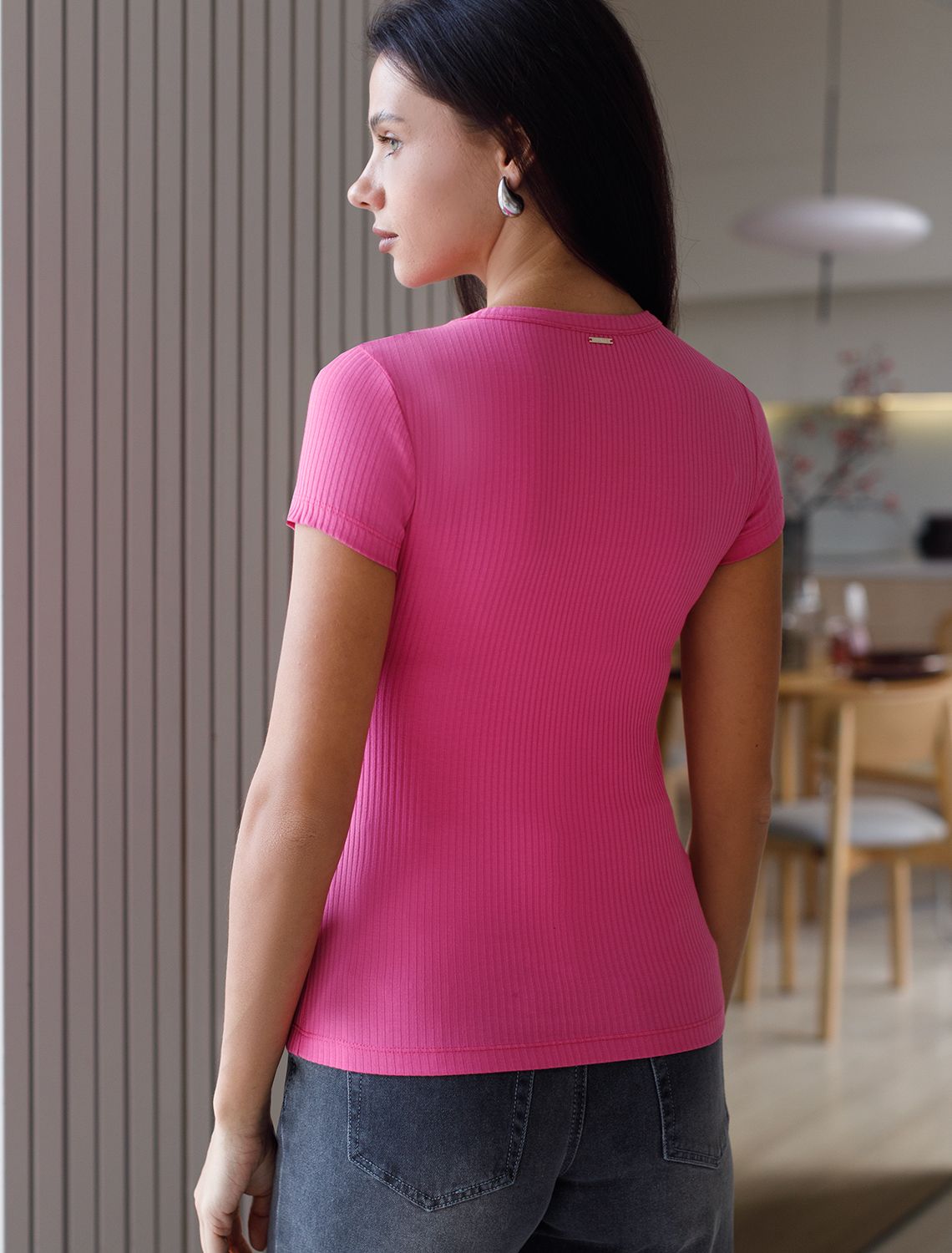 Футболка из трикотажа в широкий рубчик D49.064 фуксия
